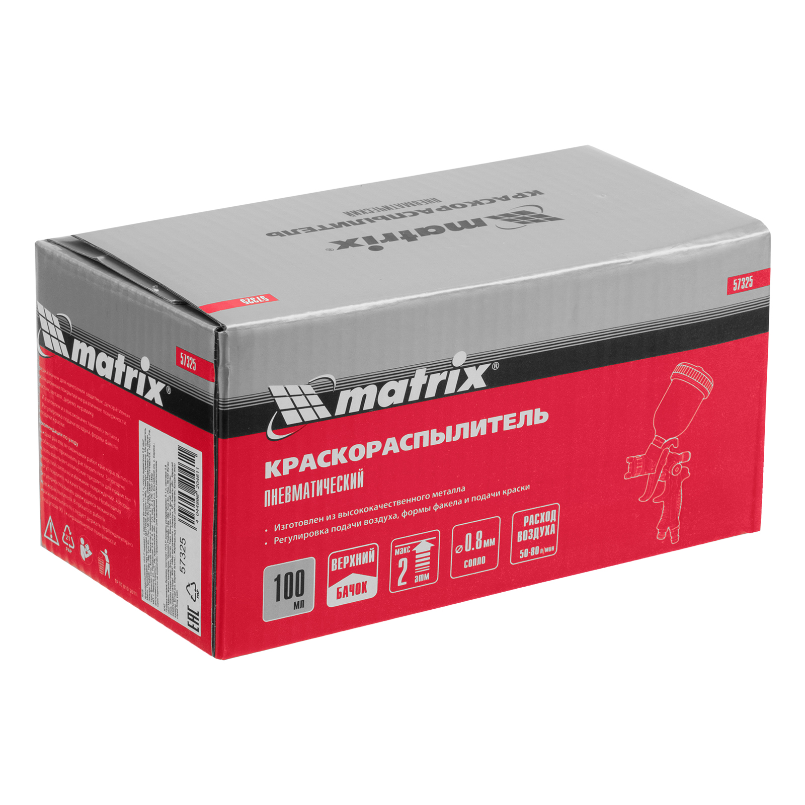 Краскораспылитель HVLP пневмат. с верхним бачком V= 0,1 л, сопло диаметром 0.8 мм Matrix в Москве