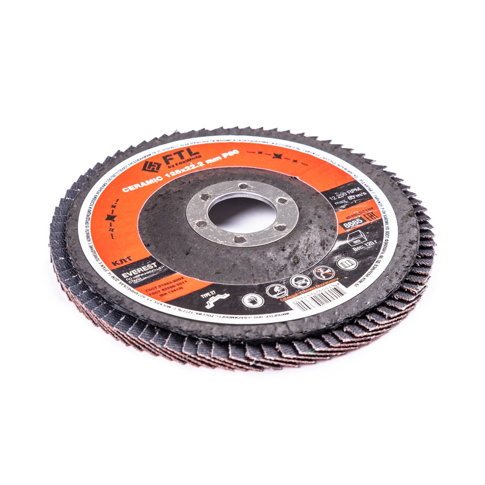 Лепестковый диск для шлифования по нержавеющей стали FTL Everest 27 125 х 22,2 мм P80 – это расходный материал для ручной угловой шлифовальной машины при работе с изделиями из нержавеющей стали, твёрдых сплавов, легированной стали. Диск предназначен для зачистки и шлифовки стальных заготовок, снятия усиления сварного шва, съёма металла, удаления окалины и заусенцев. Рабочая поверхность плоского диска ровная и в основном применяется для обработки плоскости и внешних угловых соединений. Оптимальный угол работы для плоского КЛТ – от 0° до 15°. Плоские КЛТ лучше всего подходят для подготовки поверхности и финишной обработки. Удаление материала и финиш происходят за один шаг, что снижает время обработки. Серия EVEREST — это премиальный инновационный керамический абразив для работы исключительно по изделиям из нержавеющей стали. Электростатический метод нанесения обеспечивает расположение всех абразивных зёрен острыми режущими кромками вверх, перпендикулярно основе. В процессе работы керамические зёрна постоянно сохраняют острую режущую кромку, а отличная теплопроводность керамики наиболее эффективно предотвращает перегрев, что также увеличивает время работы абразива.ИЗНОСОСТОЙКОСТЬ: Благодаря премиальной формуле режущая и шлифовальная способность абразива снижается в процессе работы значительно медленнее, позволяя выполнить больше работы.ЭФФЕКТИВНАЯ РАБОТА С СИЛЬНЫМ ПРИЖИМОМ: Машинная сборка при производстве исключает ошибки при наклеивании лепестков на основание диска, а плотная набивка обеспечивает более сильный прижим во время работы.САМОЗАТАЧИВАЮЩИЙСЯ АБРАЗИВ: Зёрна керамики состоят из ещё более многочисленных и мелких кристаллов по сравнению с оксидом циркония, что обеспечивает ярко выраженный эффект самозатачивания и скалывания в процессе работы. Керамические зёрна постоянно сохраняют острую режущую кромку, а отличная теплопроводность керамики предотвращает перегрев, что также увеличивает время работы абразива. По некоторым исследованиям, керамическое зерно работает в 2 раза агрессивнее, и в 10 раз дольше. чем оксид алюминия.ПРЕМИАЛЬНЫЙ КЕРАМИЧЕСКИЙ АБРАЗИВ: Премиальный компаунд на базе керамического абразива сохраняет остроту режущих кромок до полного износа, не перегревается даже при сильном прижиме и обладает эффектом самозатачивания.ДВОЙНОЕ МЕТАЛЛИЧЕСКОЕ КОЛЬЦО: Двойное металлическое кольцо на диске обеспечивает плотную посадку на фланец УШМ, исключая биения и вибрацию при работе.ПРЕИМУЩЕСТВА:По нержавеющей стали (!)Керамический абразив (лучший по износостойкости и теплопроводности)Минимальное содержание железа, серы, хлораТип 27 (куполообразный, с плоской поверхностью)Электростатический метод нанесения абразиваНаилучший эффект самозатачиванияВозможность работы с большим прижимом (требуется мощная УШМ)Двойное металлическое кольцо для плотной посадки на фланец УШМДвойная влагозащитная упаковкаФУНКЦИОНАЛЬНЫЕ ОСОБЕННОСТИ:ГЕРМЕТИЧНОСТЬ УПАКОВКИ: Диски упакованы в специальную термоусадочную герметичную плёнку, которая предохраняет от пыли и влаги при длительном хранении в условиях повышенной влажности, на строительных объектах и крупных промышленных производствах.КОМПЛЕКТАЦИЯ: Круг лепестковый для шлифования по нержавеющей стали FTL Everest 27 125 х 22,2 мм P80 в термоусадочной плёнке со вкладышем