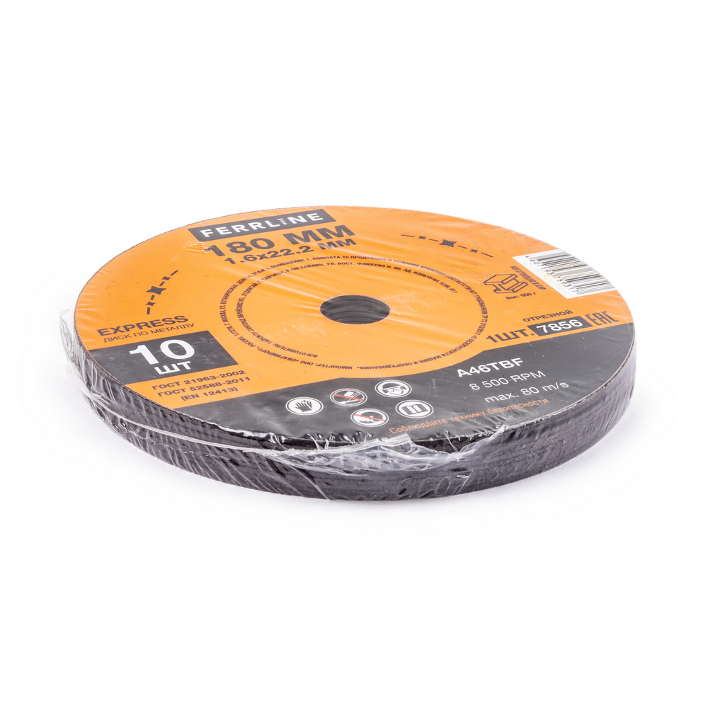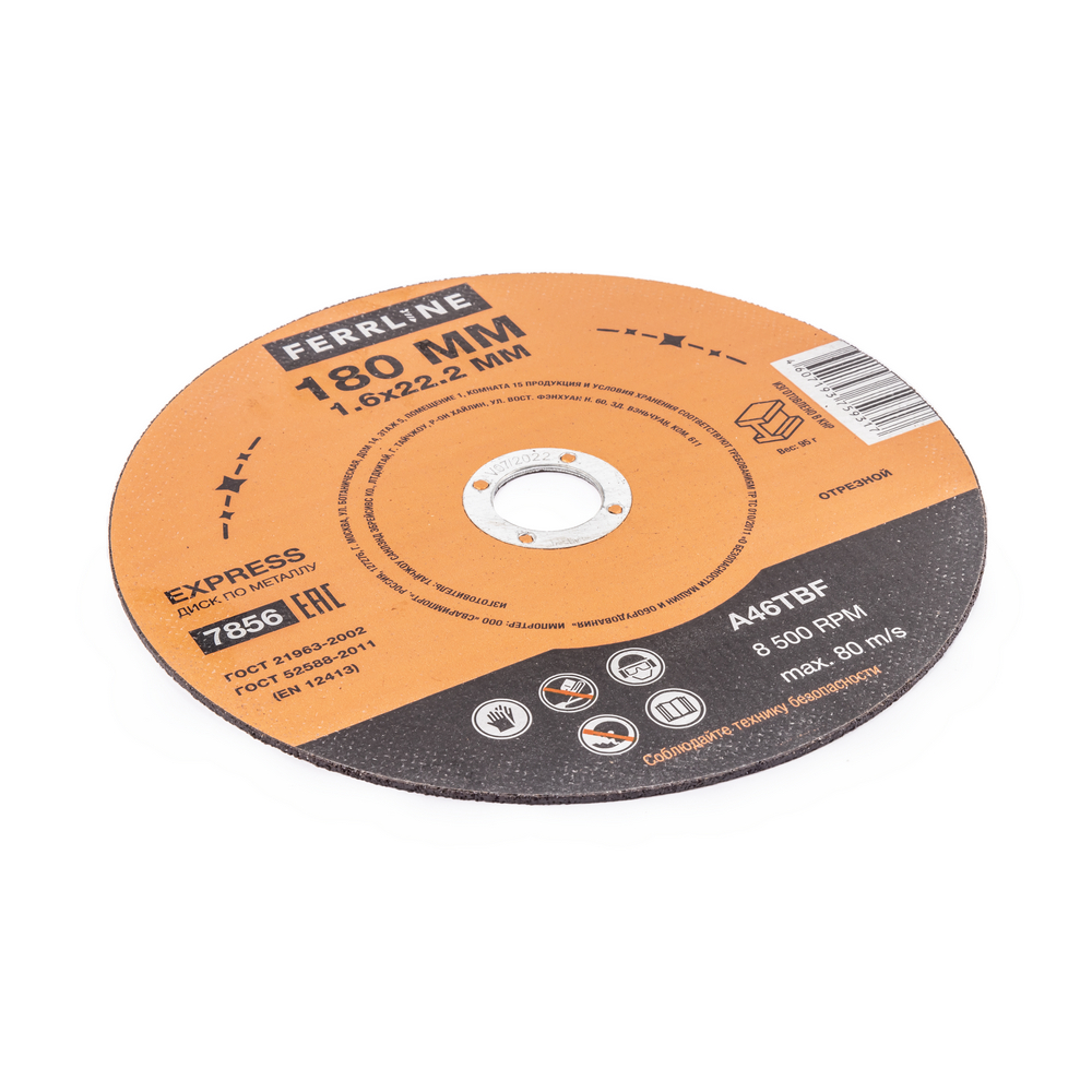 Диск отрезной по металлу FerrLine Express 180 х 1,6 х 22,2 мм A46TBF - расходный инструмент для ручной угловой шлифовальной машины, предназначенный для резки различных изделий из чёрных металлов (чугунов). Конструктивно представляет собой плоский диск (тип 41), поверхность которого покрыта слоем абразивных частиц. Посыпка скреплена между собой бакелитовой связкой и армирована одной стекловолоконной сеткой и тканой подложкой. Поставляется во влагозащитной упаковке. Серия EXPRESS представляет абразивный состав высокой твёрдости, оптимизированный для скоростного реза чёрных металлов. Не рекомендуется для реза изделий из нержавеющей стали во избежание перегрева, прижога, окисления, потери эффективности легирующих добавок.ИЗНОСОСТОЙКОСТЬ: Благодаря премиальной формуле режущая и шлифовальная способность абразива снижается в процессе работы значительно медленнее, позволяя выполнить больше работы.УНИКАЛЬНЫЙ СОСТАВ: Технология производства включает в себя эксклюзивный рецепт абразива и смол: применение только твёрдых составов класса ВТ1, ВТ2, армирование сеткой из стекловолокна. Высокая твёрдость связывающей смолы позволяет сделать значительно большее количество резов по сравнению с кругами с обычным абразивом.МЕТАЛЛИЧЕСКОЕ КОЛЬЦО: Металлическое кольцо на диске обеспечивает плотную посадку на фланец УШМ, исключая биения и вибрацию при работе.ГЕРМЕТИЧНОСТЬ УПАКОВКИ: Диски упакованы в специальную термоусадочную герметичную плёнку, которая предохраняет от пыли и влаги при длительном хранении в условиях повышенной влажности, на строительных объектах и крупных промышленных производствах.ПРЕИМУЩЕСТВА:По чёрному металлу (!)Тип 41 (плоский)Быстрый резСостав на базе оксида алюминияМеталлическое кольцо для плотной посадки на фланец УШМВысокая твёрдость составаВлагозащитная упаковкаКОМПЛЕКТАЦИЯ: Отрезной круг по чёрному металлу в термоусадочной плёнке со вкладышем – 10 шт.