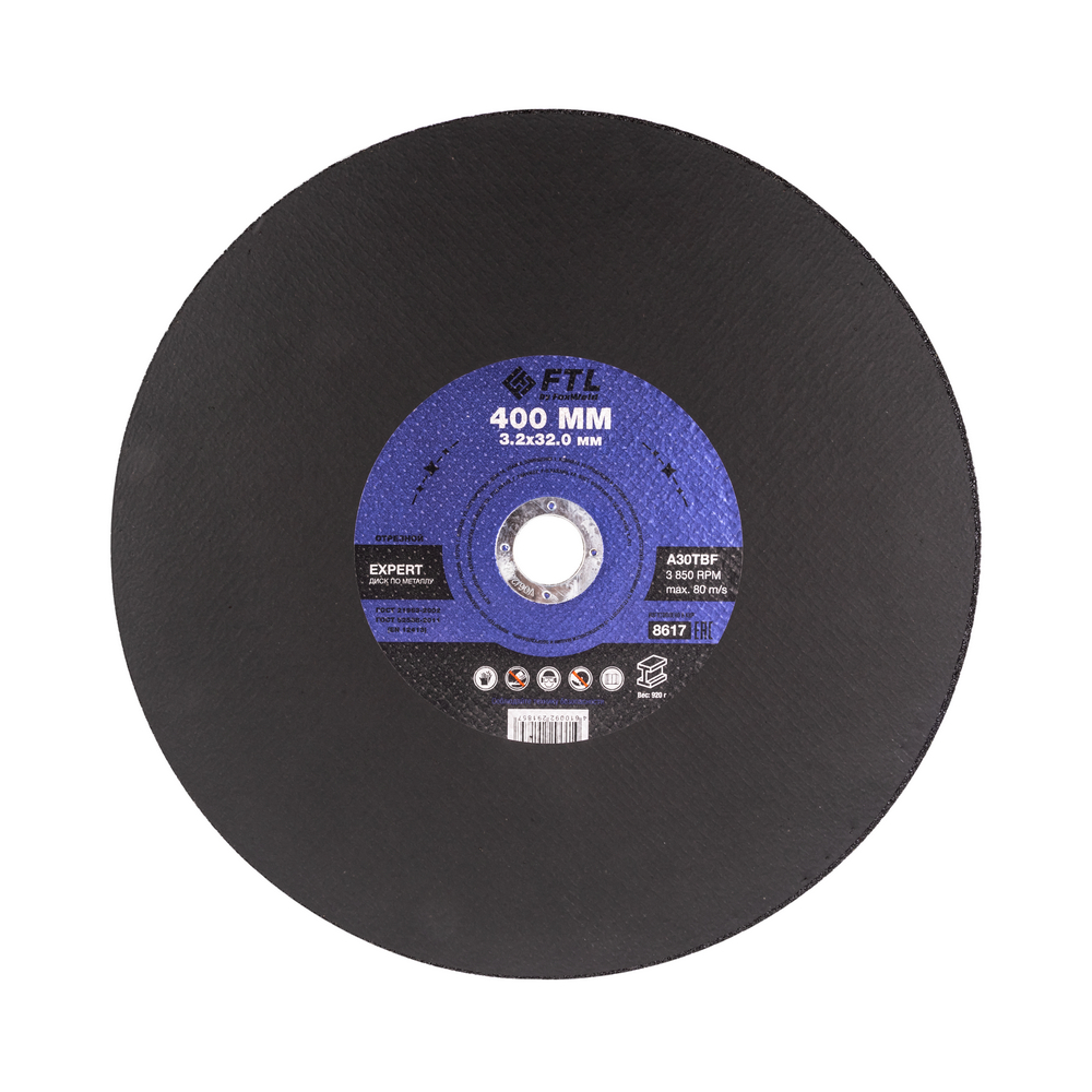 Диск отрезной по металлу FTL Expert 400 х 3,2 х 32,0 мм A30TBF - расходный инструмент для станков, предназначенный для резки различных изделий из чёрных металлов (чугунов). Конструктивно представляет собой плоский диск (тип 41), поверхность которого покрыта слоем абразивных частиц. Посыпка скреплена между собой бакелитовой связкой и армирована одной стекловолоконной сеткой и тканой подложкой. Поставляется во влагозащитной упаковке. Серия EXPERT - абразивный состав, оптимизированный для высокой износостойкости при резе чёрных металлов. Это свойство даёт увеличенный срок службы одного круга, давая возможность сделать значительно бóльшее количество резов заготовки, чем круги с обычным абразивом. Не рекомендуется для реза изделий из нержавеющей стали во избежание перегрева, прижога, окисления, потери эффективности легирующих добавок. Посадочный диаметр 32 мм предназначен для станков, не подходит для ручных УШМ!ИЗНОСОСТОЙКОСТЬ: Благодаря премиальной формуле режущая и шлифовальная способность абразива снижается в процессе работы значительно медленнее, позволяя выполнить больше работы.УНИКАЛЬНЫЙ СОСТАВ: Технология производства включает в себя эксклюзивный рецепт абразива и смол: применение только твёрдых составов класса ВТ1, ВТ2, армирование сеткой из стекловолокна. Высокая твёрдость связывающей смолы позволяет сделать значительно большее количество резов по сравнению с кругами с обычным абразивом.МЕТАЛЛИЧЕСКОЕ КОЛЬЦО: Металлическое кольцо на диске обеспечивает плотную посадку на фланец станка, исключая биения и вибрацию при работе.ГЕРМЕТИЧНОСТЬ УПАКОВКИ: Диски упакованы в специальную термоусадочную герметичную плёнку, которая предохраняет от пыли и влаги при длительном хранении в условиях повышенной влажности, на строительных объектах и крупных промышленных производствах.ПРЕИМУЩЕСТВА:По чёрному металлу (!)Для станков (!)Не подойдёт для большинства УШМДвойное армирование (две стекловолоконные сетки, удерживающие абразив)Тип 41 (плоский)Высокая износостойкость (долгий срок службы)Состав на базе оксида алюминияПрофессиональный компаундВлагозащитная упаковкаКОМПЛЕКТАЦИЯ: Отрезной круг по чёрному металлу в термоусадочной плёнке со вкладышем – 5 шт.