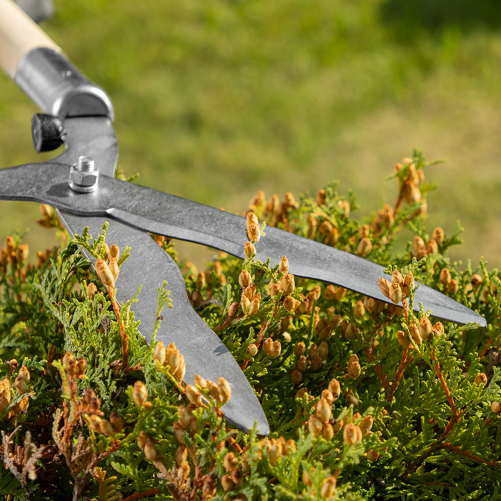 Кусторез Palisad 60810 длиной 650 мм, с волнистыми лезвиями и деревянными рукоятками, легко справляется с обрезкой молодых веток диаметром до 10 мм. Волнистые лезвия оптимальны для срезания веток с гладкой корой. Кусторез позволяет поддерживать кустарники и живые изгороди в аккуратном виде, будет полезен садоводам.