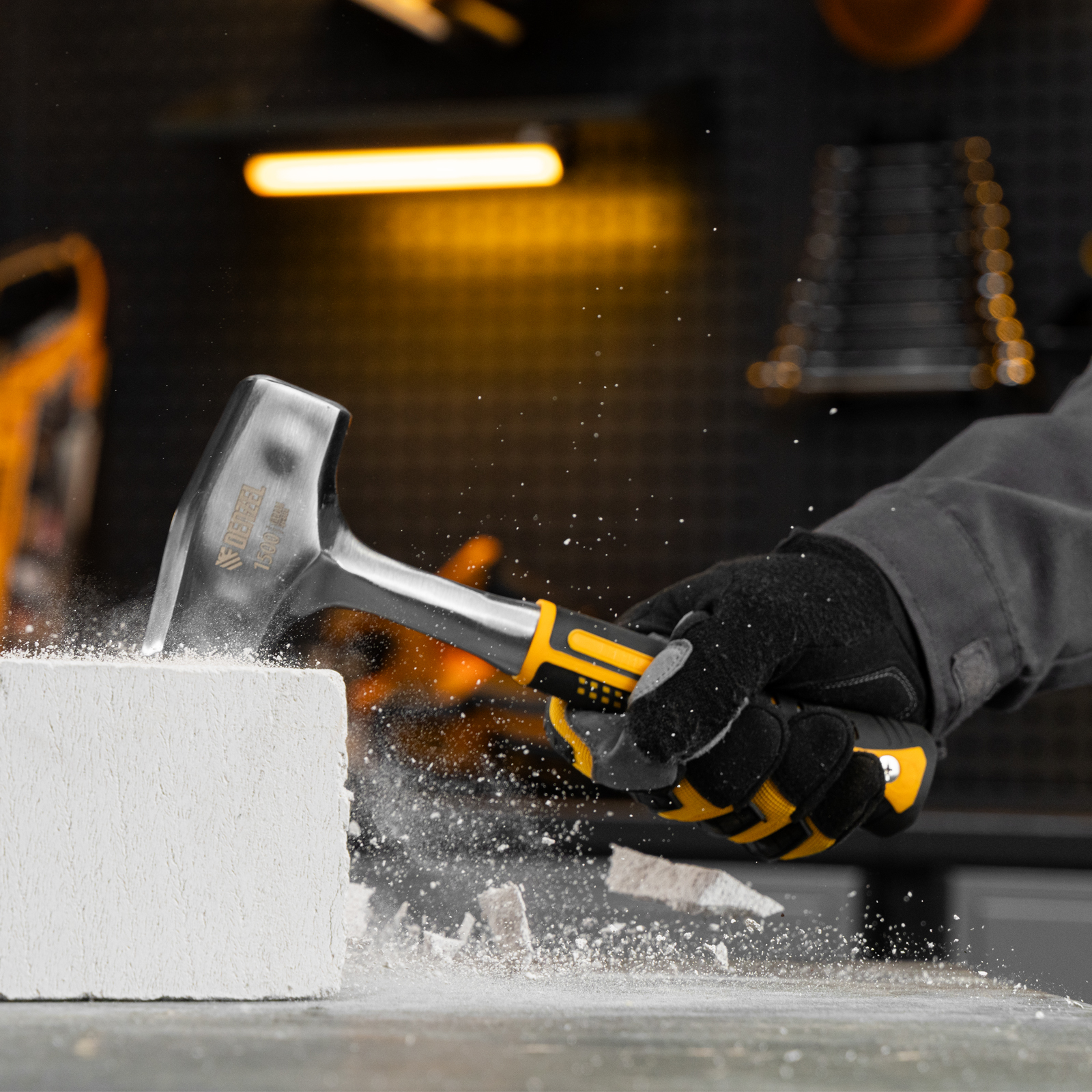Цельнометаллическая кувалда Denzel 11012 с рабочей частью весом 1,5 кг и двухкомпонентной рукояткой предназначена для нанесения несильных, но точных ударов. Позволяет забивать большие гвозди, колья, может использоваться для сгибания и придания формы металлическим деталям. Используется для проведения слесарных, строительных и кузовных работ, подойдет также и для бытового применения.