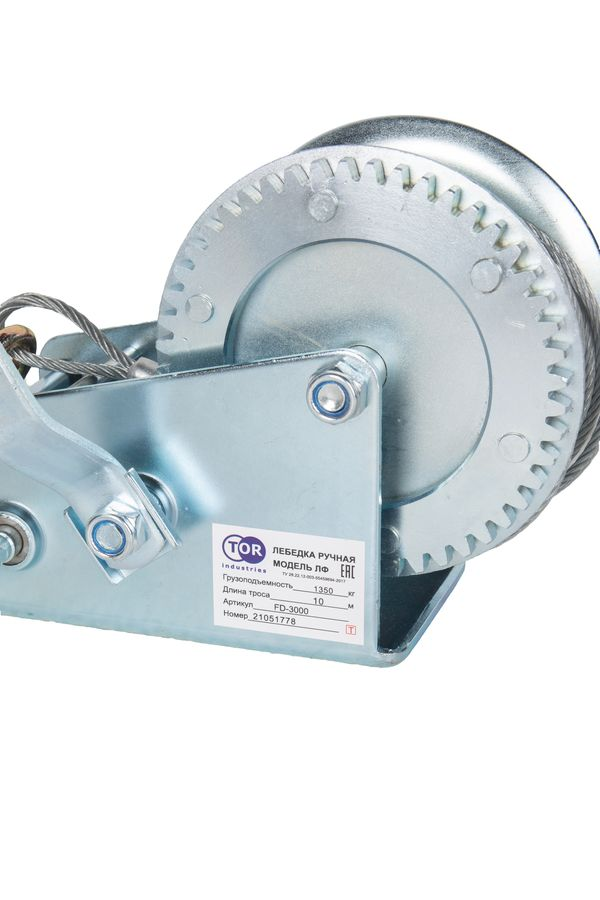 Лебедка ручная барабанная с тросом 1300кг 10м оцинкованная TOR FD в Москве
