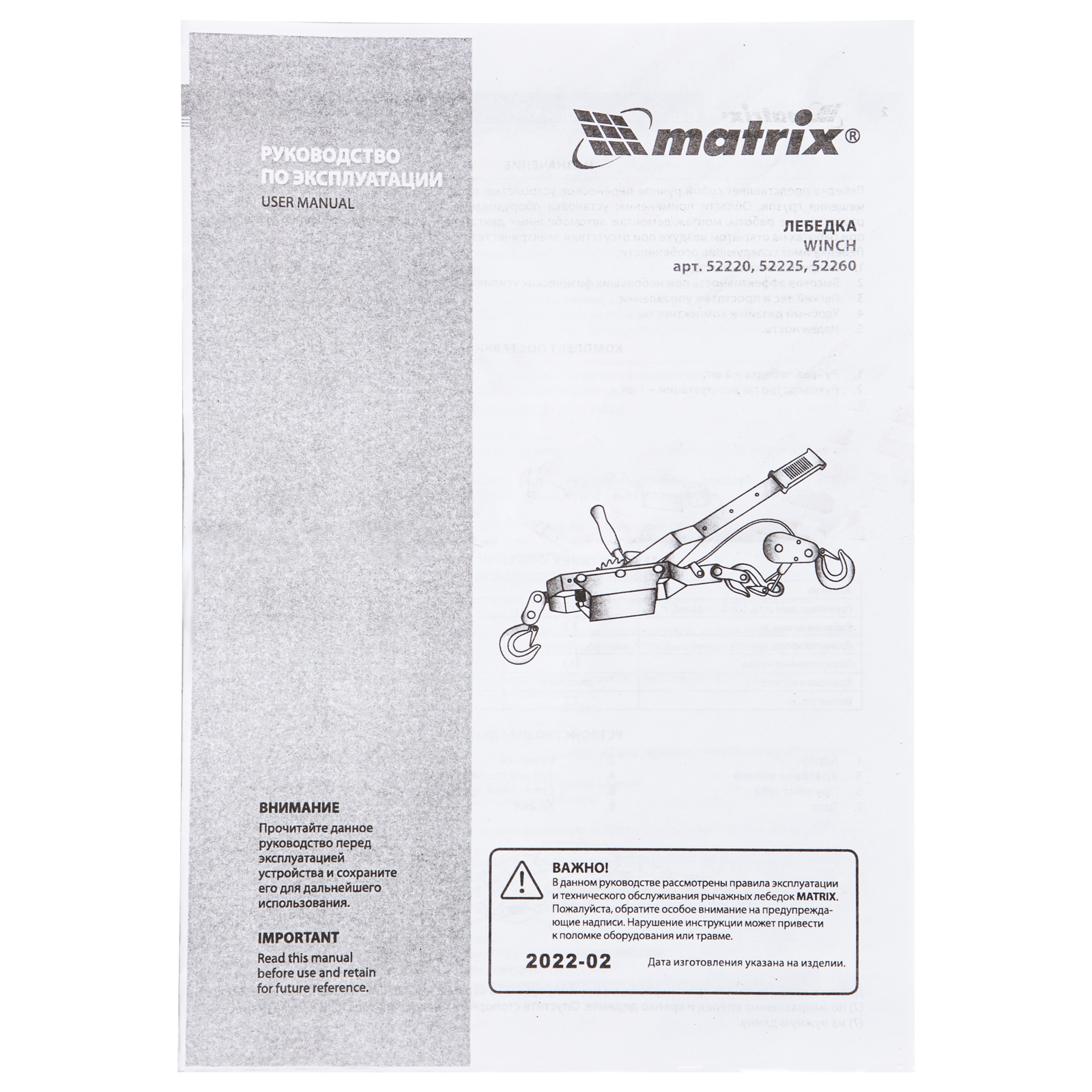 Лебедка рычажная, тяга 2 т, подъем 0.8 т, одинарное храповое колесо Matrix в Москве