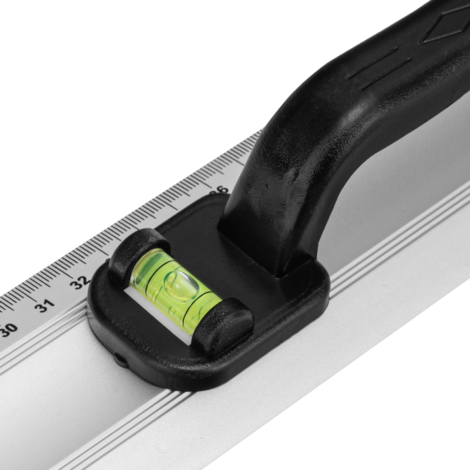 Металлическая линейка-уровень Matrix 30575 с пластмассовой ручкой и 2 глазками имеет шкалу длиной 800 мм и предназначена для разметки материалов и измерения различных предметов. 2 жидкостных глазка позволяют определить степень отклонения поверхностей от вертикали и горизонтали. Линейка используется во время строительных и ремонтных работ, также будет полезна при установке мебели и монтаже навесного оборудования.