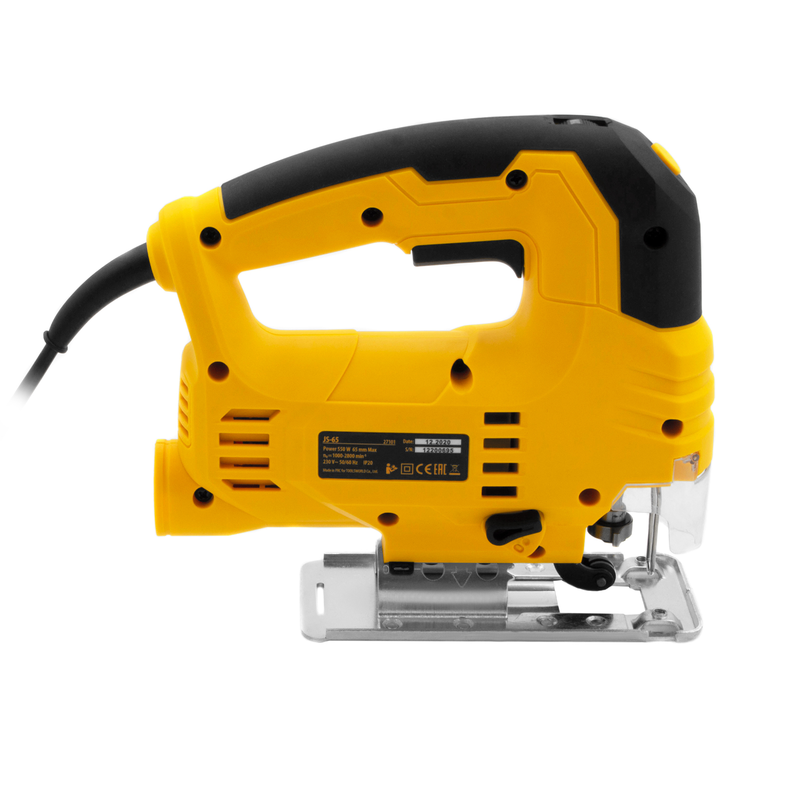 Модель JS-65 — самая легкая и компактная в линейке производителя, ее размеры минимальны, а вес составляет всего 2,2 кг, благодаря чему можно без усталости работать долгое время. Несмотря на свою компактность, инструмент не уступает крупногабаритным аналогам в эффективности и особенно удобен во вспомогательных строительных работах. Лобзик подключается к сети, поэтому время работы не ограничено.