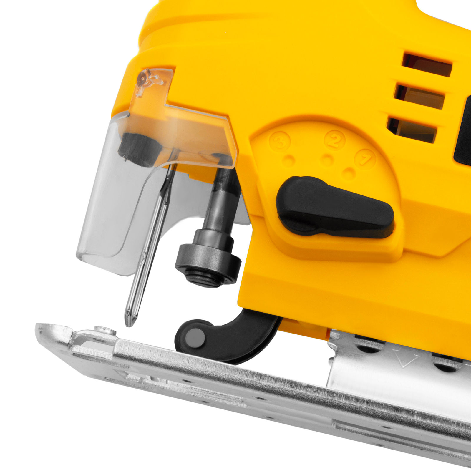 - Электронная регулировка частоты ходов — можно выбрать оптимальную скорость реза в зависимости от обрабатываемого материала.