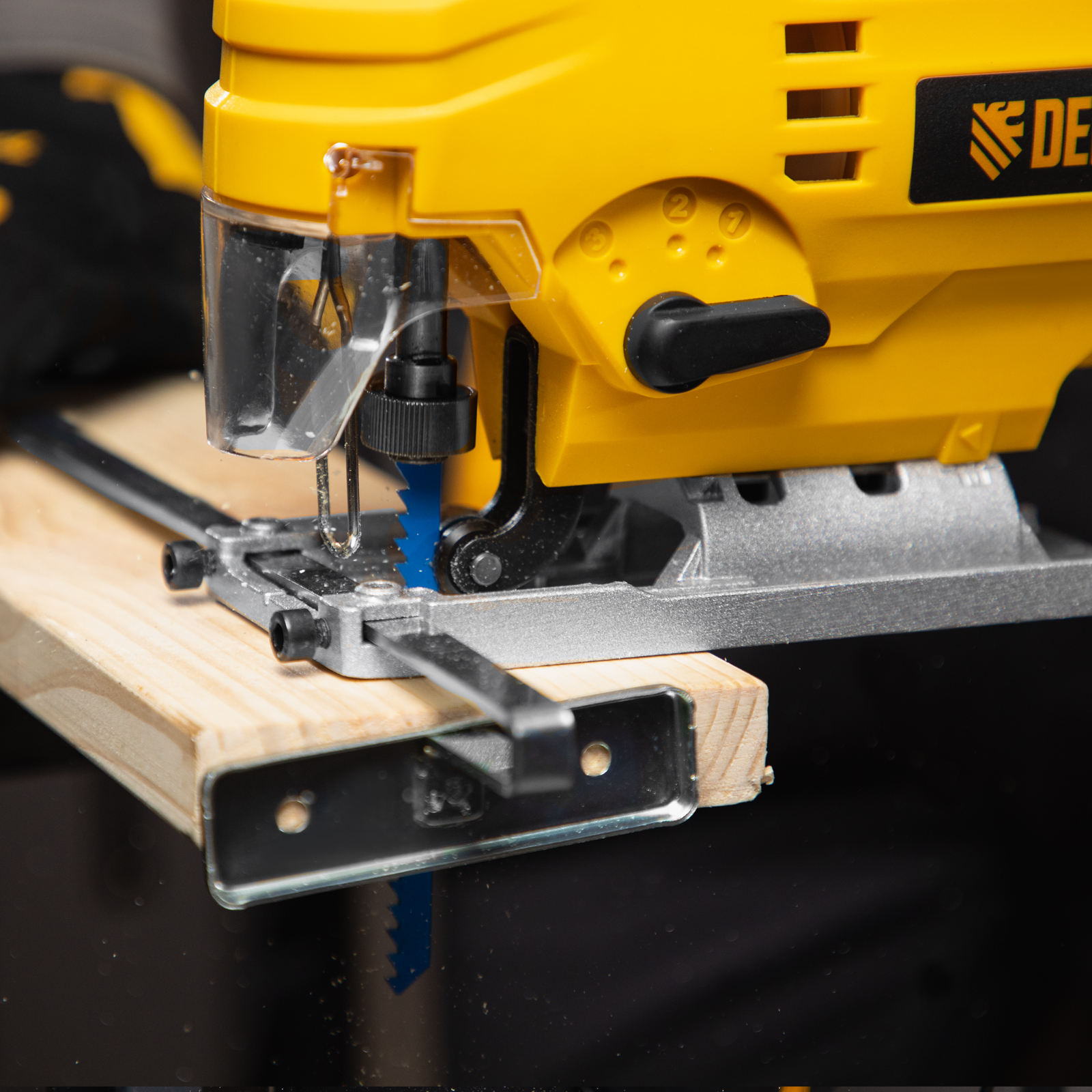- Электронная регулировка частоты ходов — можно выбрать оптимальную скорость реза в зависимости от обрабатываемого материала.