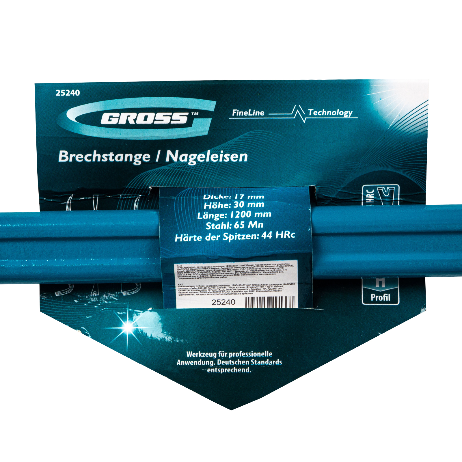 Лом-гвоздодер Gross 25240 размером 1200 х 30 х 17 мм, с двутавровым профилем, используется для извлечения гвоздей. Демонтажная рабочая часть позволяет разбирать деревянную тару, заборы, кровлю и другие конструкции. Также инструмент может применяться в качестве рычага для поднятия и перемещения тяжеловесных грузов: двутавровый профиль устойчив к изгибающим нагрузкам при повороте на 90°. Лом-гвоздодер будет полезен при проведении строительных и ремонтных работ, пригодится также и в домашнем хозяйстве.