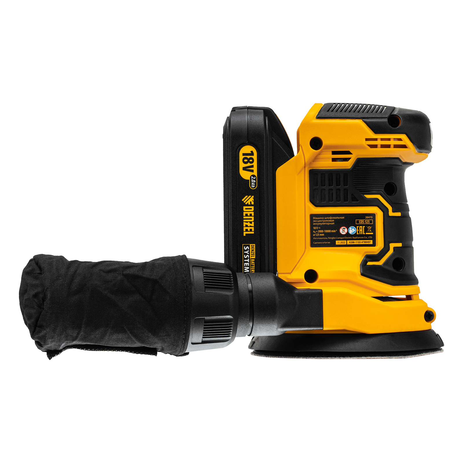 Машина шлифовальная эксцентриковая аккумуляторная COS-125, 18В Li-Ion Denzel в Москве