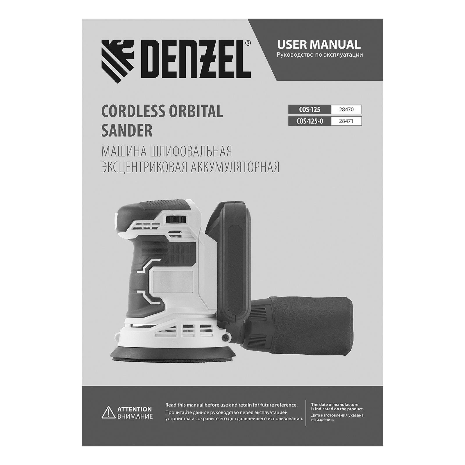 Машина шлифовальная эксцентриковая аккумуляторная COS-125-0, 18В Li-Ion Denzel в Москве