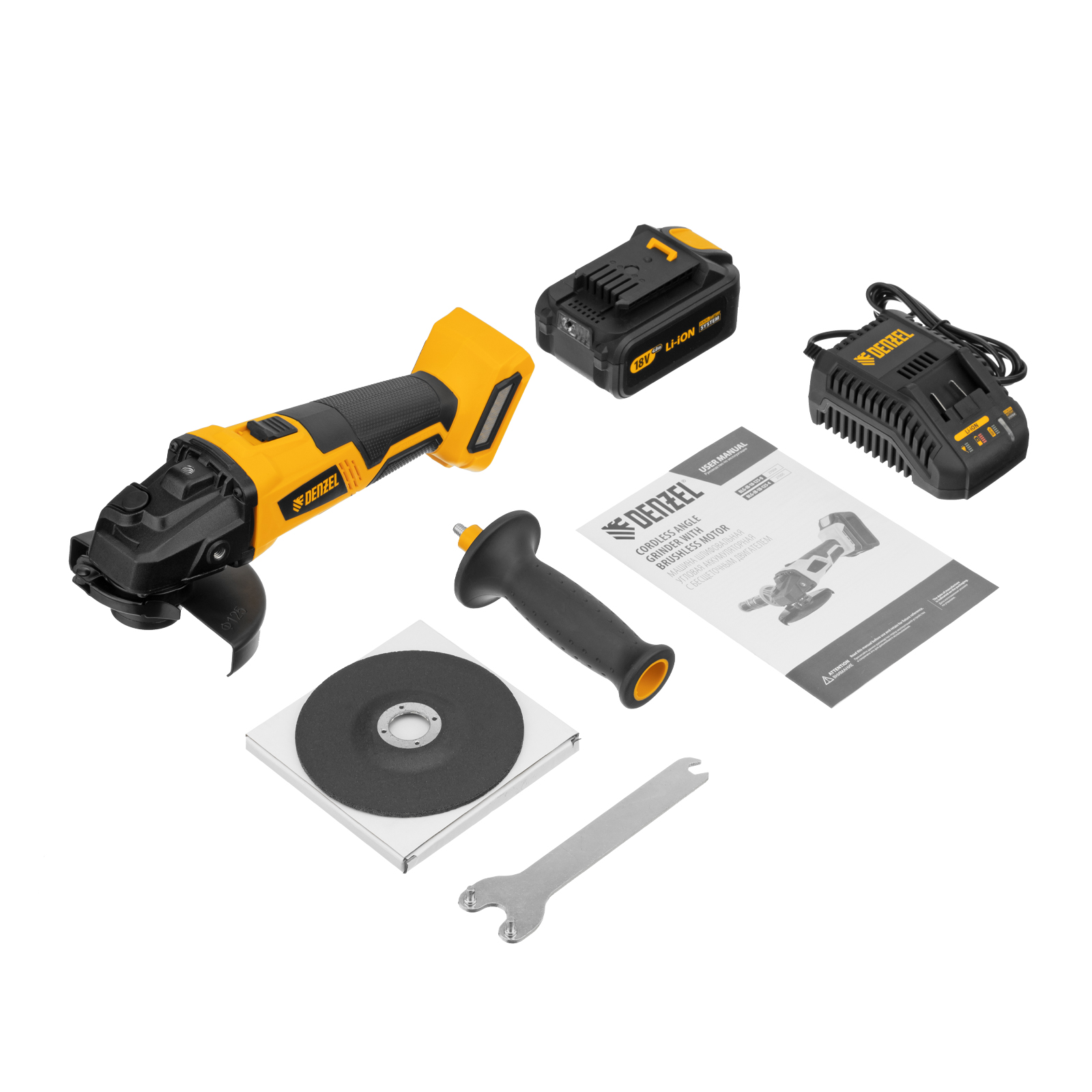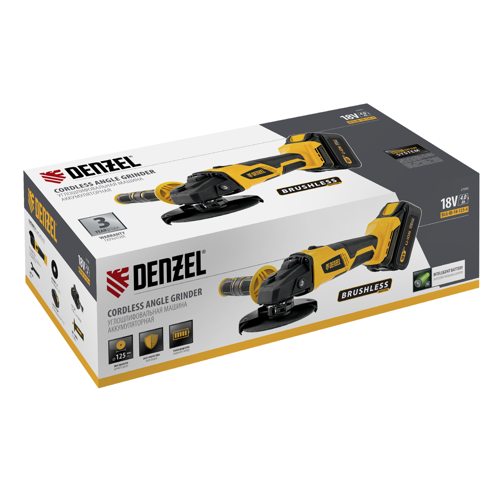 Машина углошлифовальная аккумуляторная бесщет. BLG-IB-18-125-4, Li-ion, 18 В Denzel в Москве