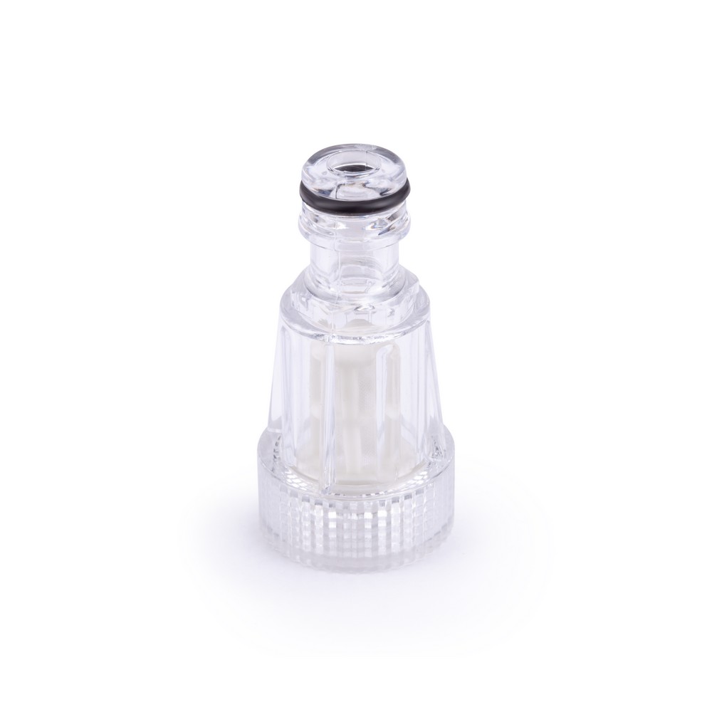 Входной фильтр тонкой очистки воды AG1 для моек высокого давления KVAZARRUS устанавливается на входном патрубке моек и обеспечивает дополнительную защиту рабочих элементов помпы высокого давления от мелковзвешенных твердых частиц содержащихся в воде, тем самым сводит к минимуму вероятность поломки мойки и способствует увеличению её срока службы. Фильтр AG1 имеет внутреннюю соединительную резьбу G 3/4", что делает его совместимым со всей модельной линейкой моек высокого давления KVAZARRUS. Подключить водяной шланг к фильтру также не составит труда благодаря универсальному штуцеру под садовый коннектор на обратной стороне корпуса. Корпус фильтра разборный и изготовлен из ударопрочного пластика, а фильтрующий элемент из нейлона, который легко почистить, например, промыв под струей чистой проточной воды. Данная возможность делает фильтр обслуживаемым и гарантирует возможность многократного применения и длительный срок службы.