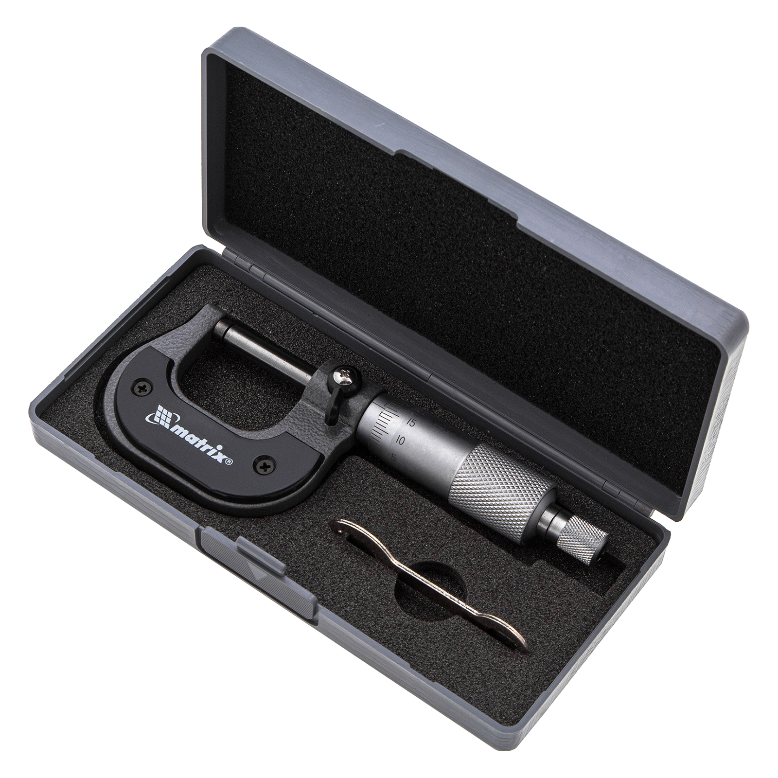 Микрометр механический Matrix 317255 используется для измерения толщины листового металла и деталей размером 0-25 мм. Обеспечивает высокую точность результатов — шаг измерения составляет 0,01 мм с допустимой погрешностью ±0,004 мм. Микрометр будет полезен на производстве, в слесарной мастерской и автосервисе.