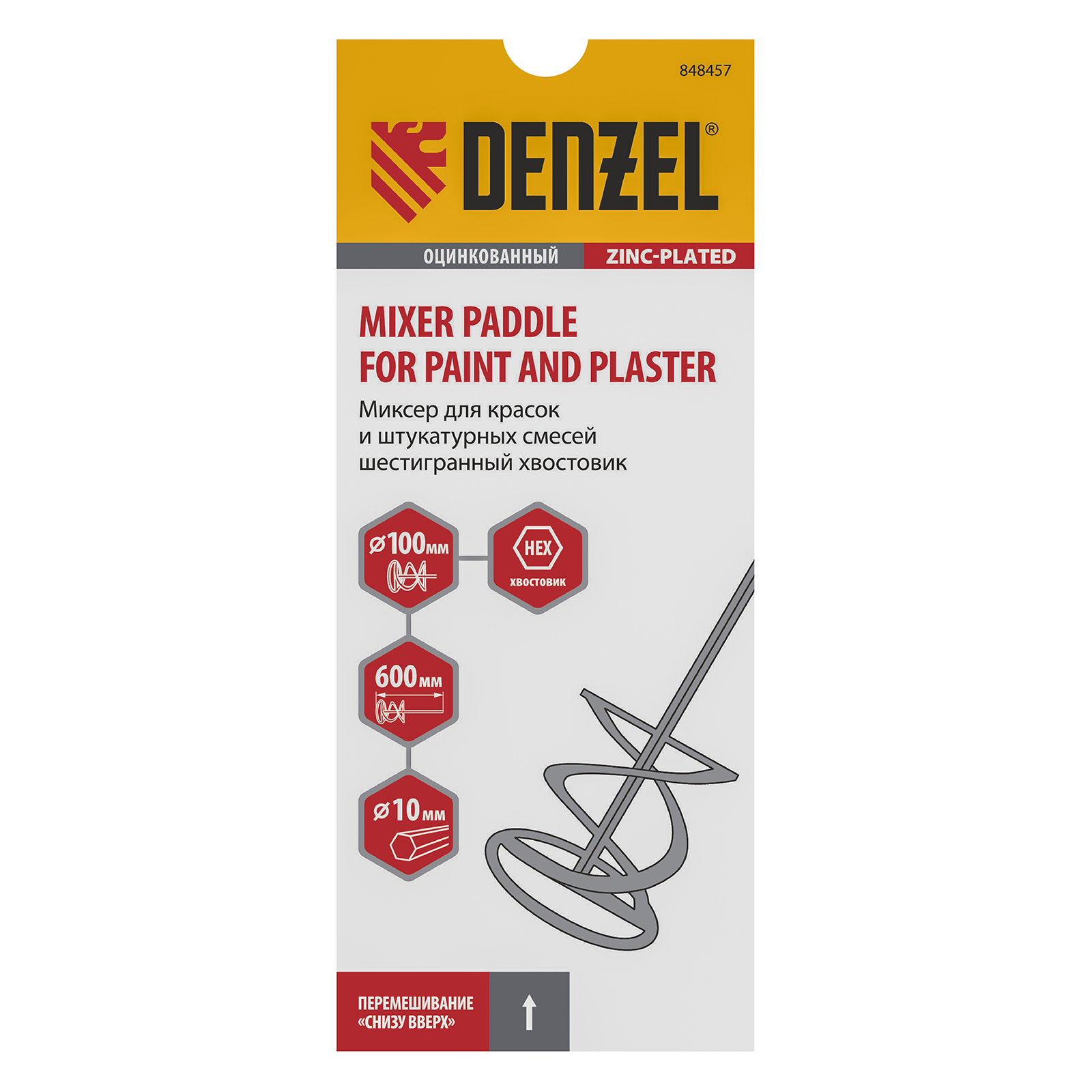 Миксер для красок и штукатурных смесей, 100 х 600 мм, оцинкованный, шестигранный хвостовик 10мм Denzel в Москве