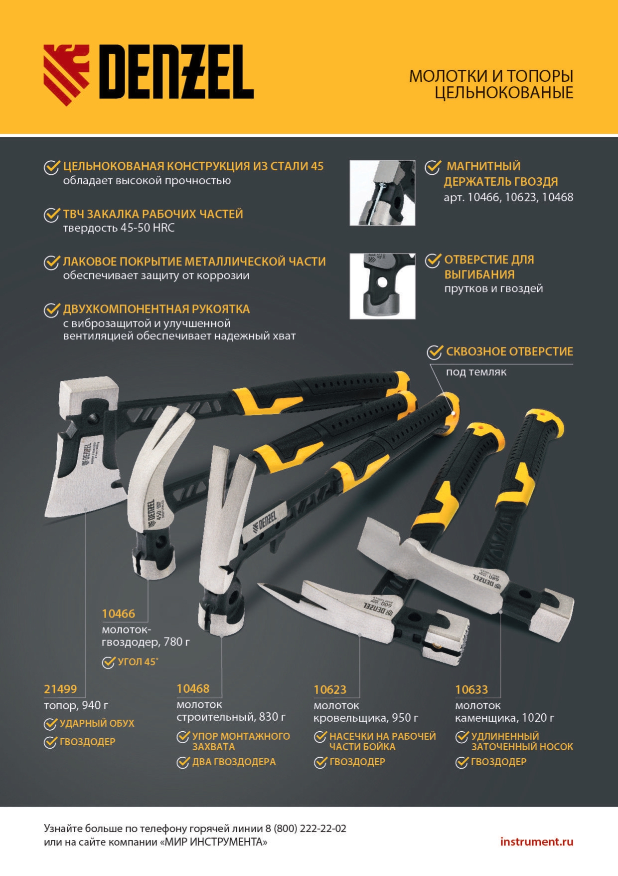- Прочность и деформационная стойкость — молоток изготовлен из среднеуглеродистой стали 45.