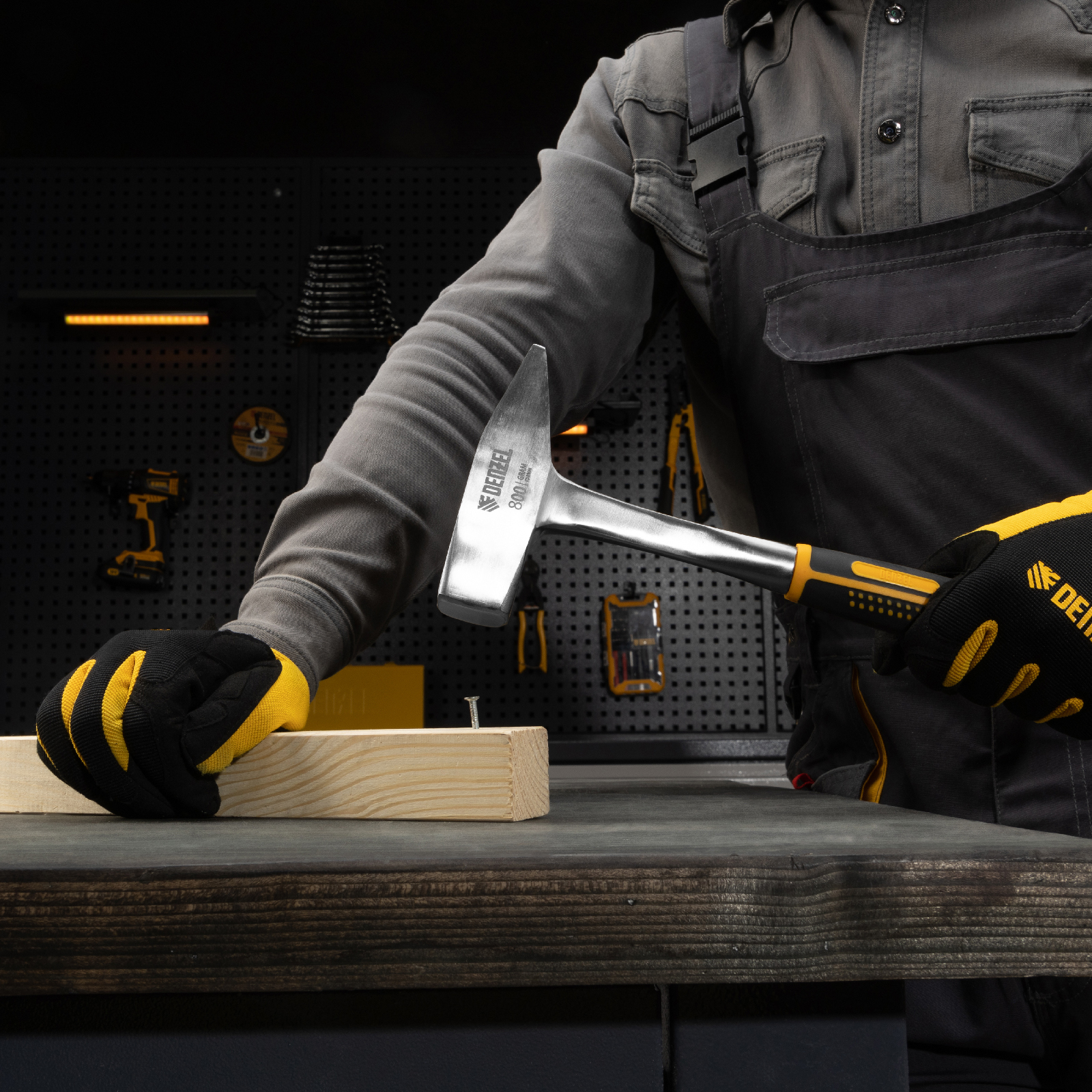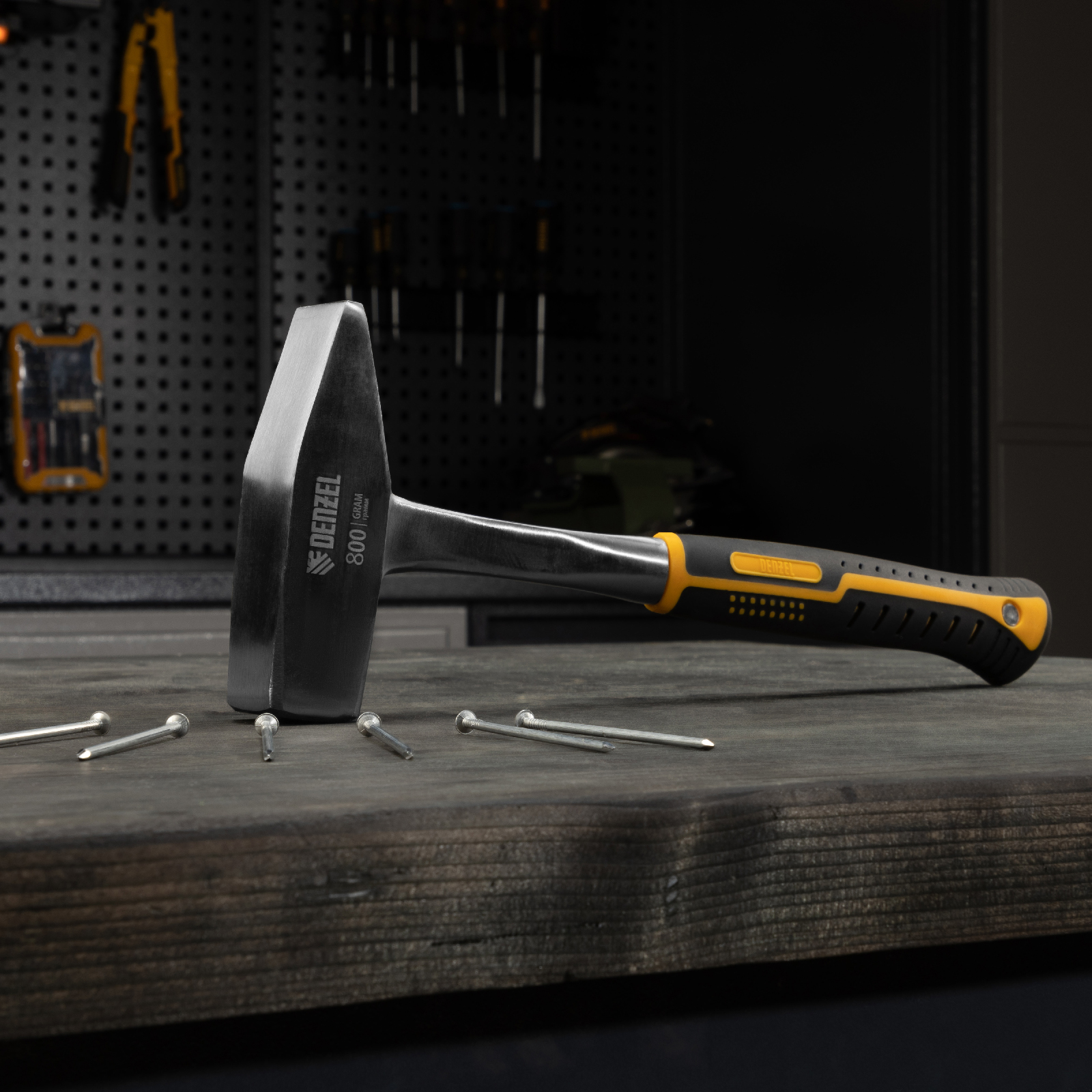 Молоток слесарный 800 г, цельнометаллический, двухкомпонентная рукоятка Denzel в Москве