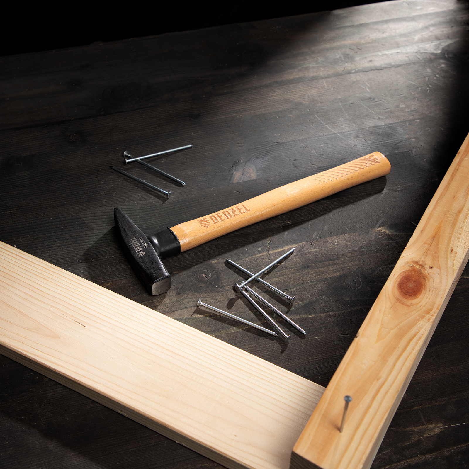 Слесарный молоток Denzel 10427 с квадратным кованым бойком весом 300 г предназначен для забивания гвоздей и другого крепежа и для работы с металлическими заготовками. Инструмент применяется во время слесарных или столярных работ в быту, также будет полезен профессионалам.
