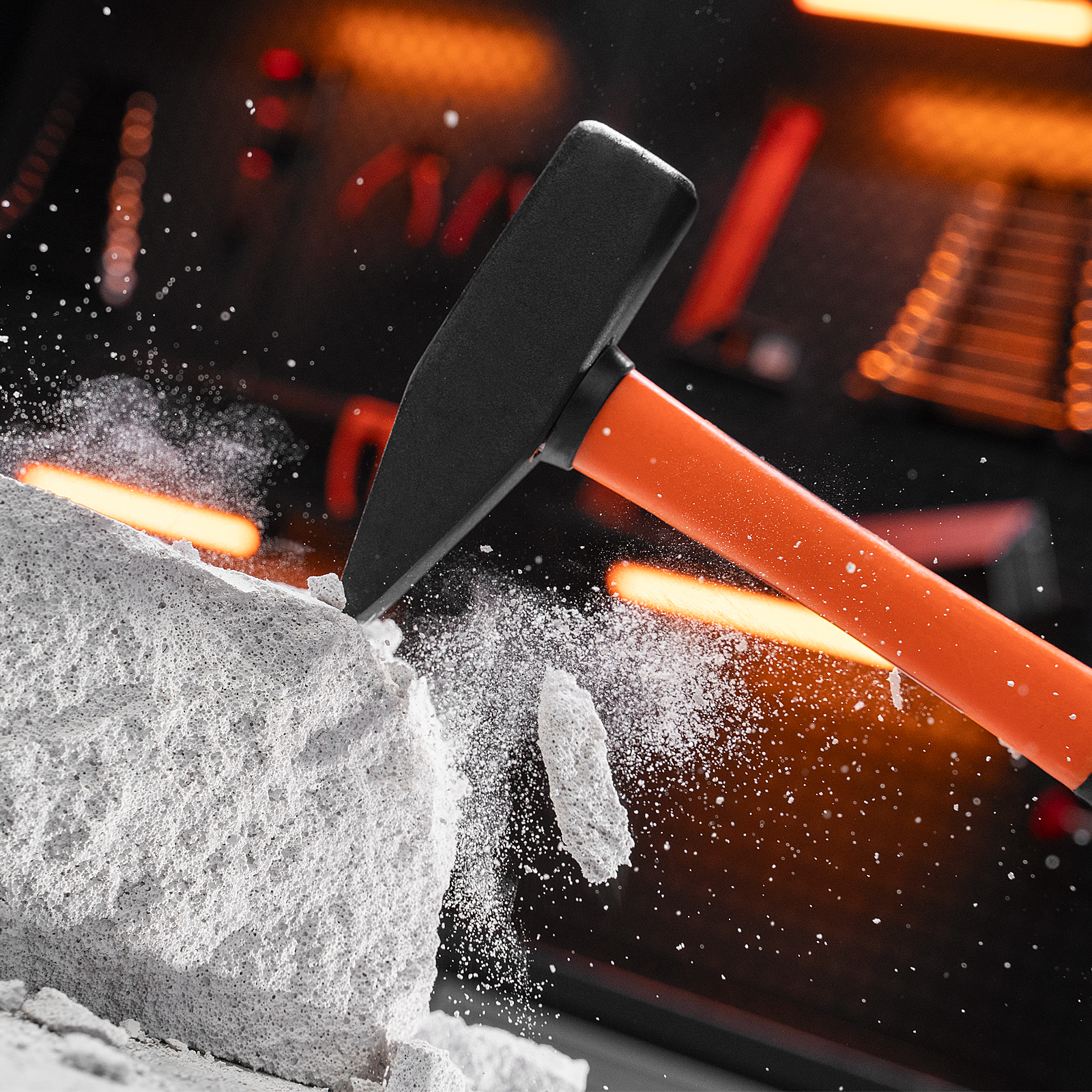 - Комфортная работа — обрезиненная фибергласовая рукоятка снижает отдачу при ударе и не выскальзывает из руки.
