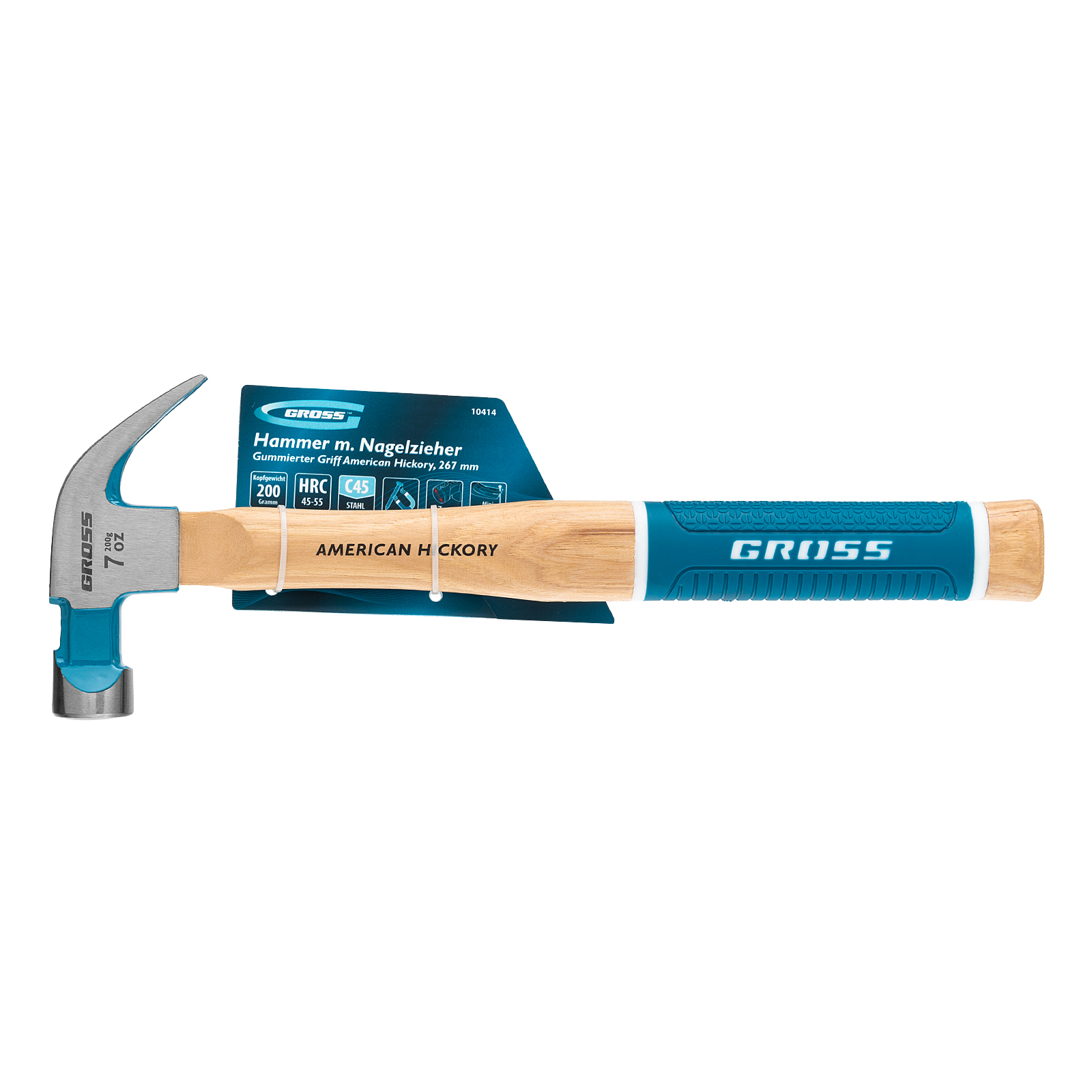 Молоток-гвоздодер, 200 г, угол 45, магнит, обрезиненная рукоятка American hickory GROSS в Москве