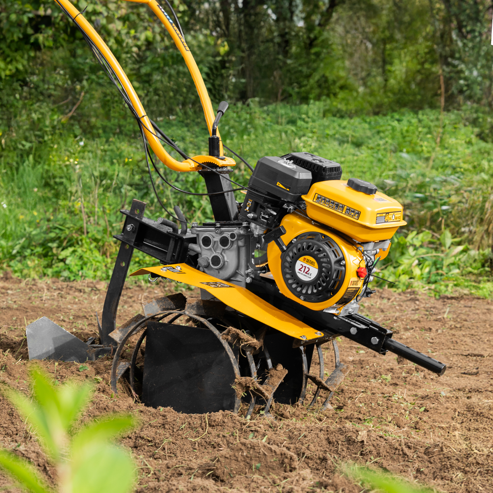 - Настраиваемая глубина вспашки — степень погружения фрез в почву можно задать, отрегулировав сошник по высоте.