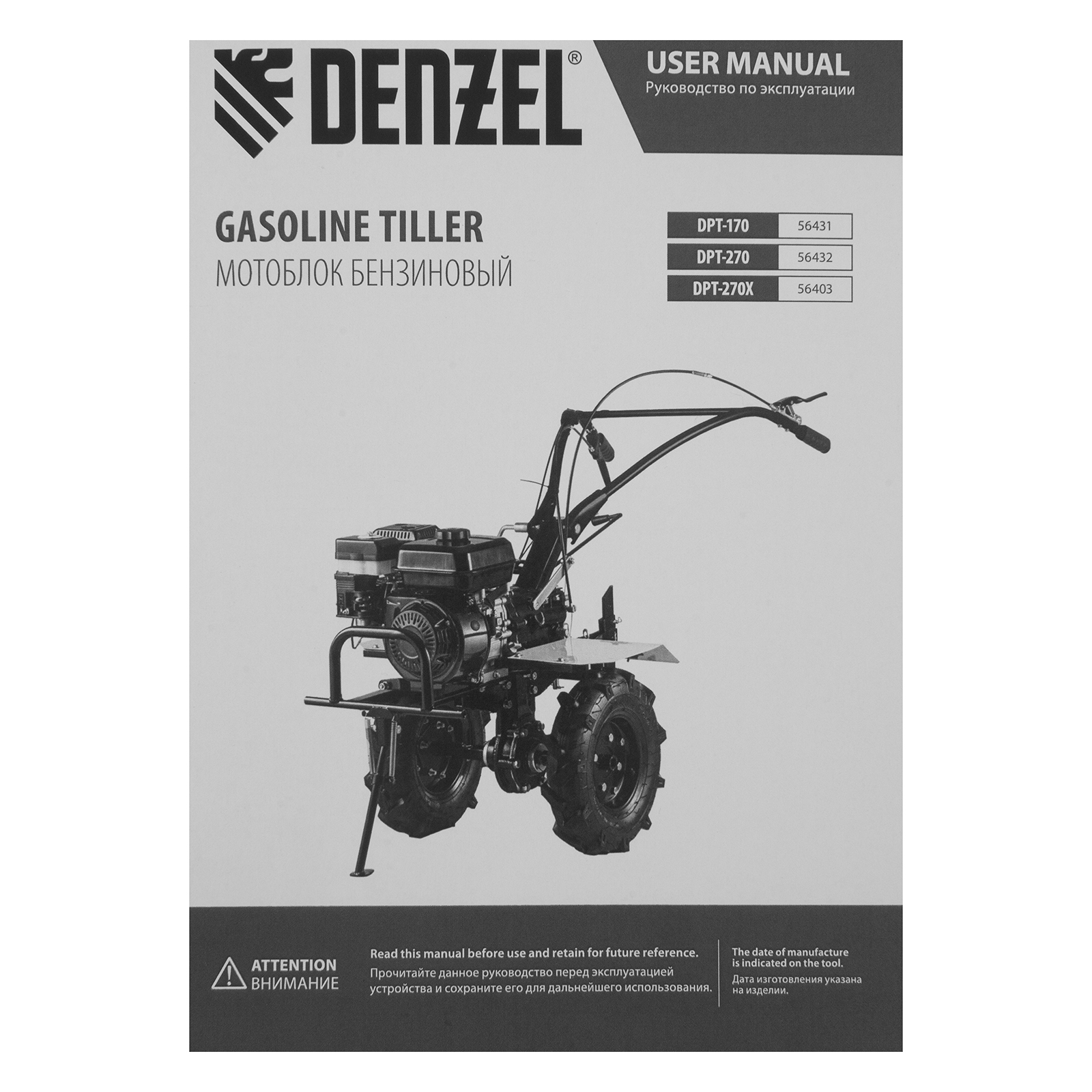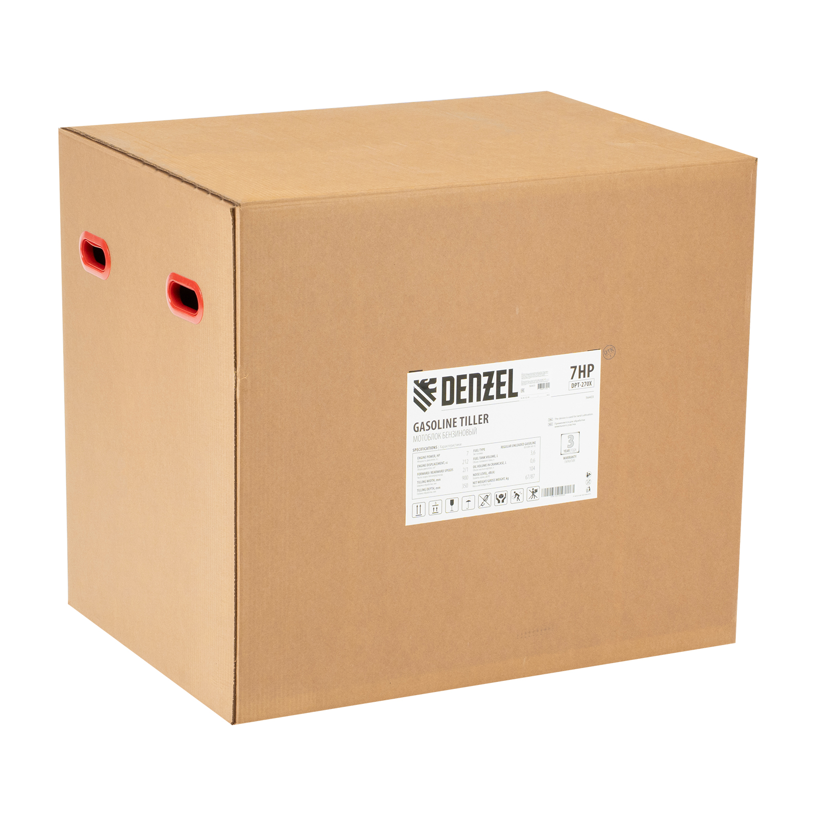 Мотоблок DPT-270X, 7 л.с, дисковое сцепление, ширина 90 см, глубина 35 см, фрез 3 х 4, ВОМ, передачи 2В/1Н Denzel в Москве