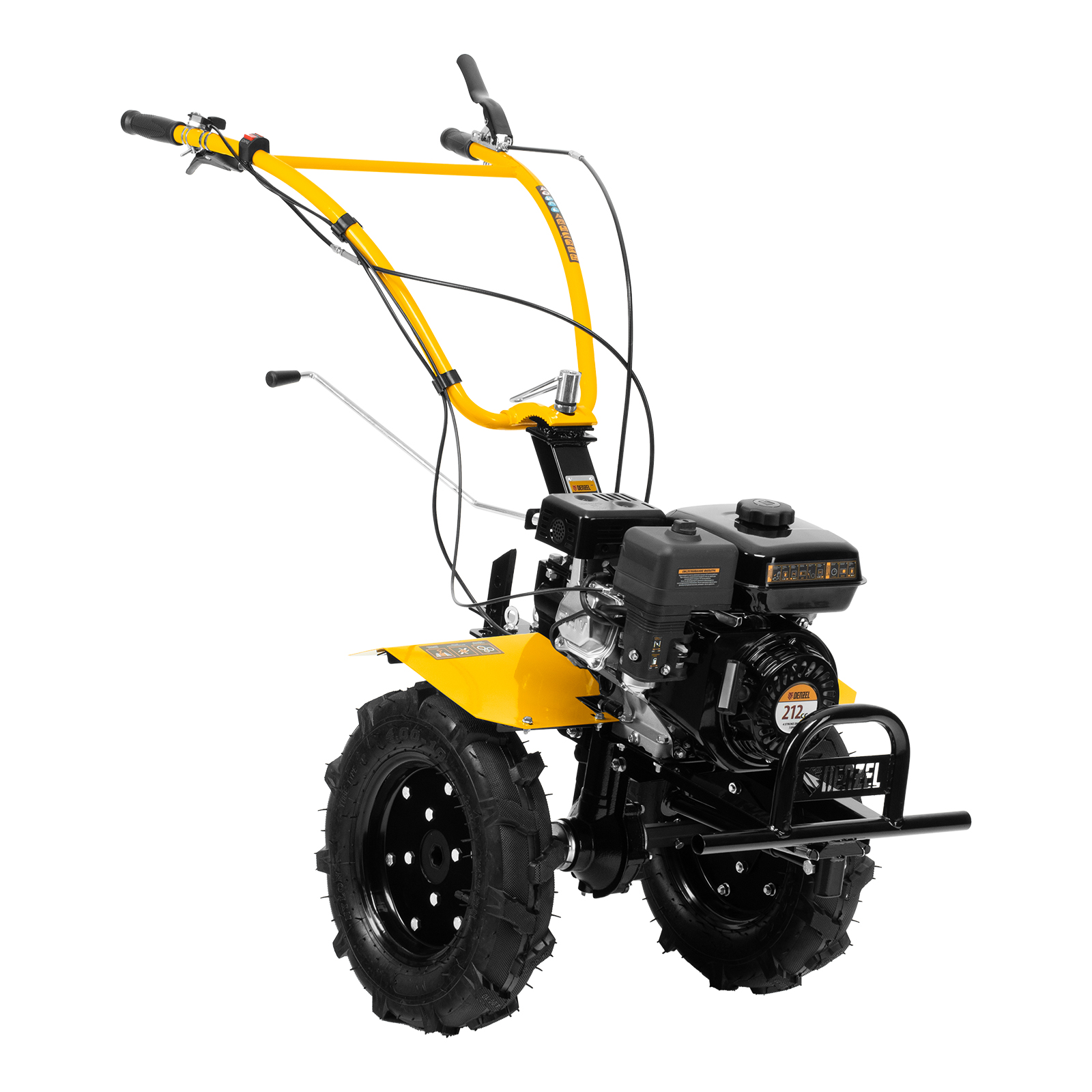 - Комфортная транспортировка — усиленная рукоятка-бампер позволяет с удобством перемещать и загружать мотоблок в транспорт.