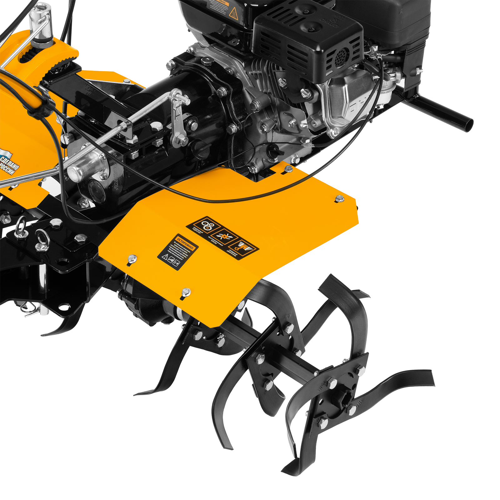 - Безопасная работа — защитная планка исключает вылет на оператора земли и посторонних предметов от вращающихся фрез.