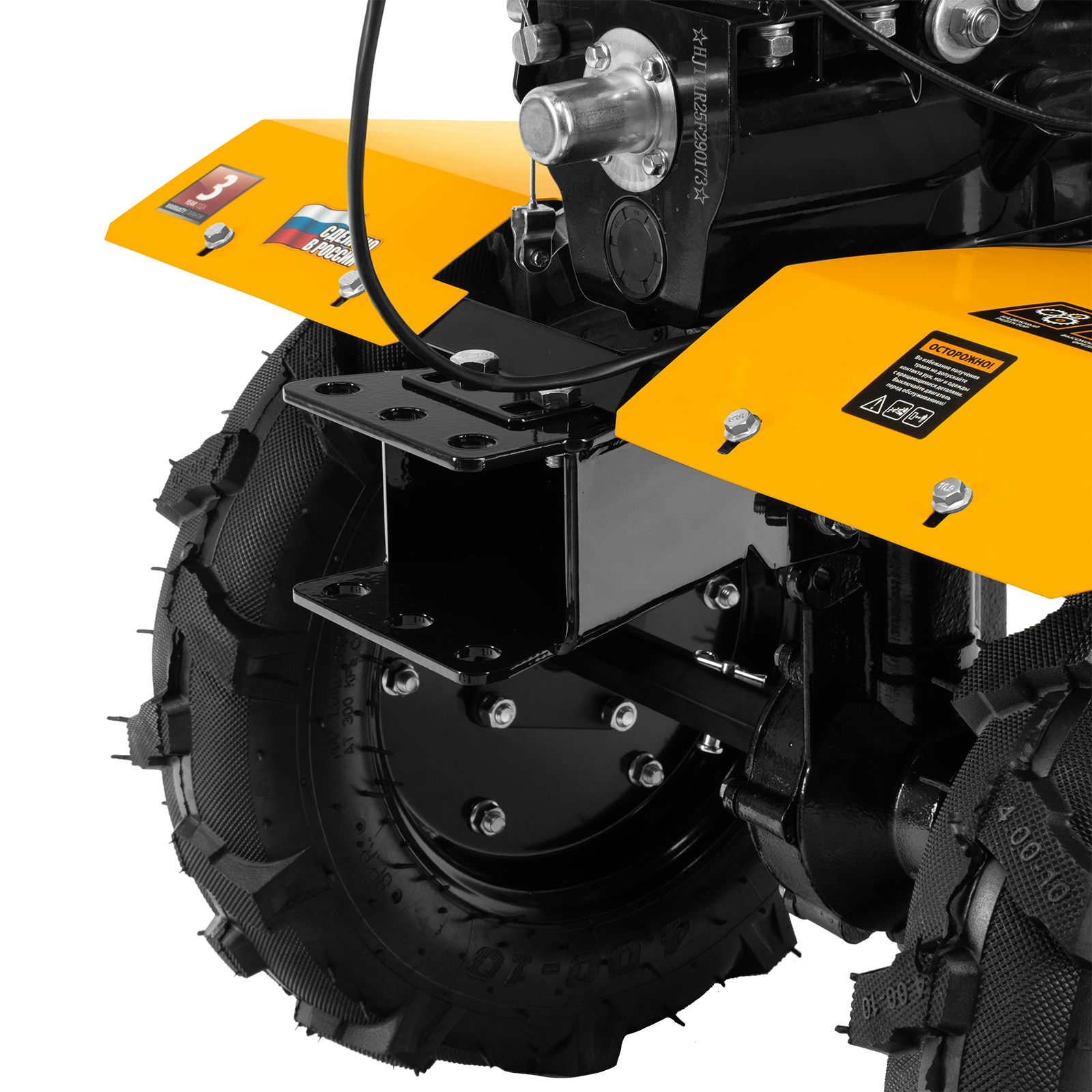 - Повышенная проходимость — увеличенные пневмоколеса обеспечивают маневренность даже на вязком грунте после дождя.