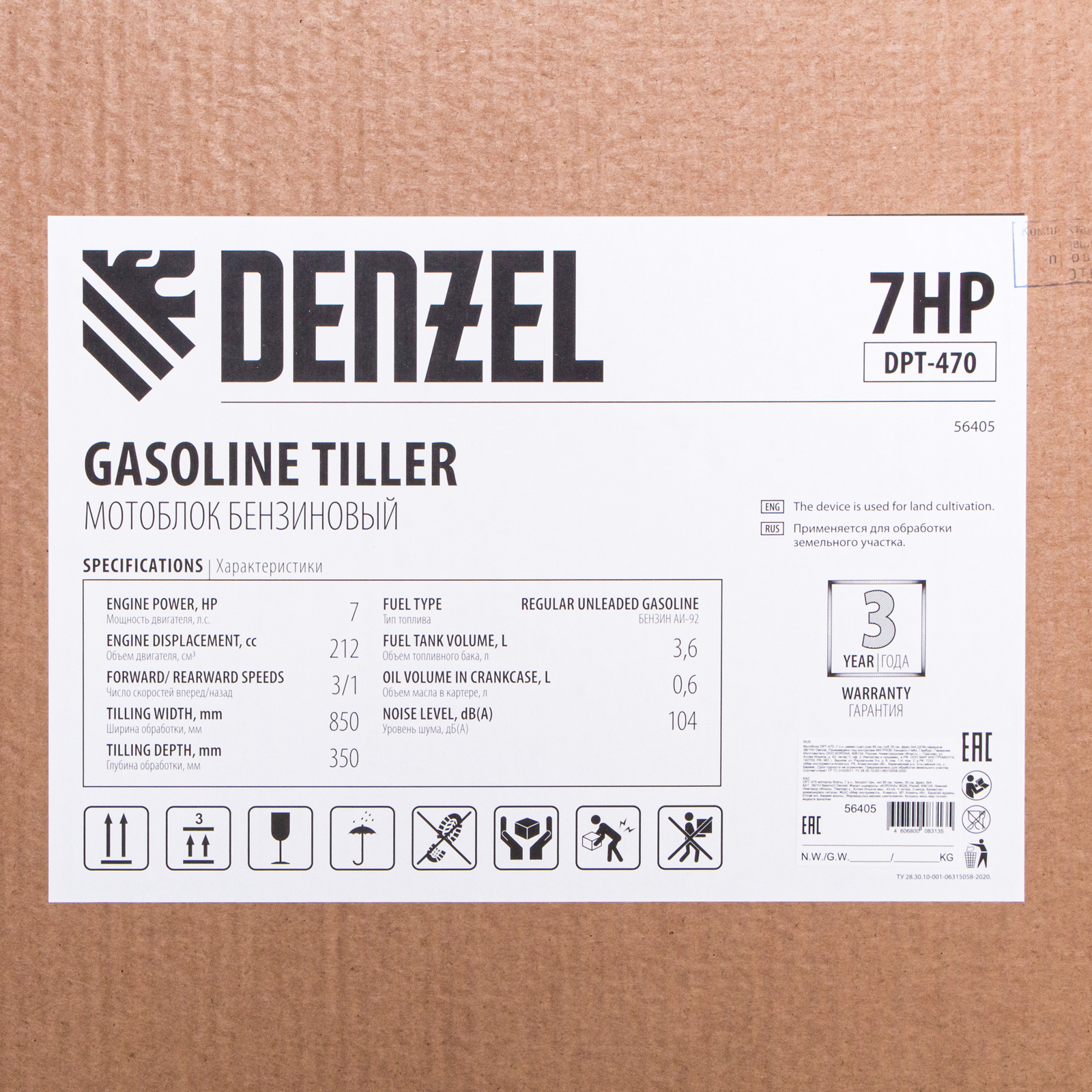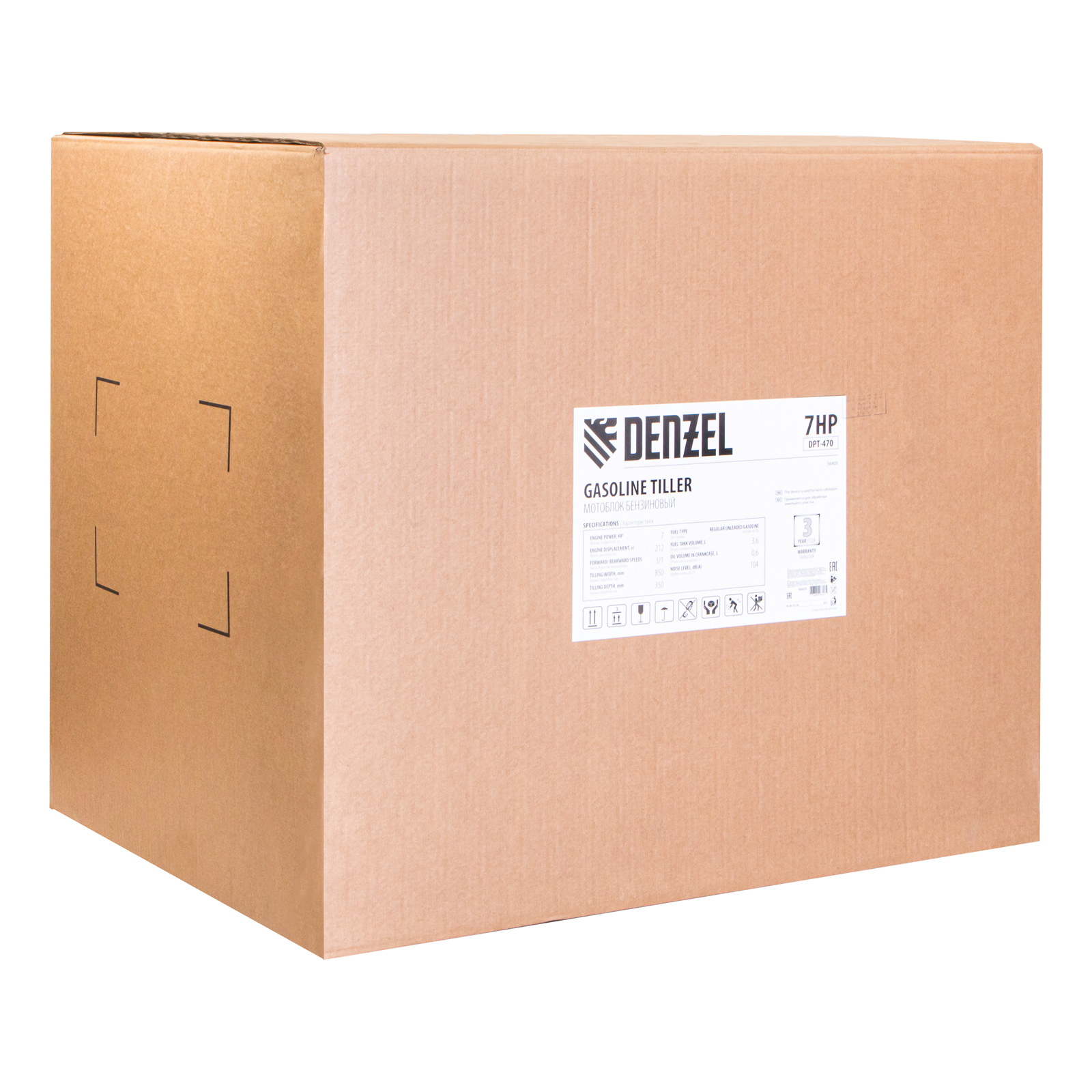 Мотоблок Denzel 56405 DPT-470 мощностью 7 л.с., с ременным сцеплением, , фрезами 3 х 4, шкивом отбора мощности ШОМ, коробкой передач 3В/1Н, — техника для вспашки, прополки, культивации почвы, обеспечивающая ширину прохода 85 см и заглубление фрез до 35 см. Благодаря надежному 4-тактному двигателю серии Long Life мощностью 7 л.с. и увеличенному весу за счет чугунного корпуса редуктора он успешно справляется с обработкой плотного грунта. Мотоблок применяется для выполнения бытовых сельскохозяйственных работ.
