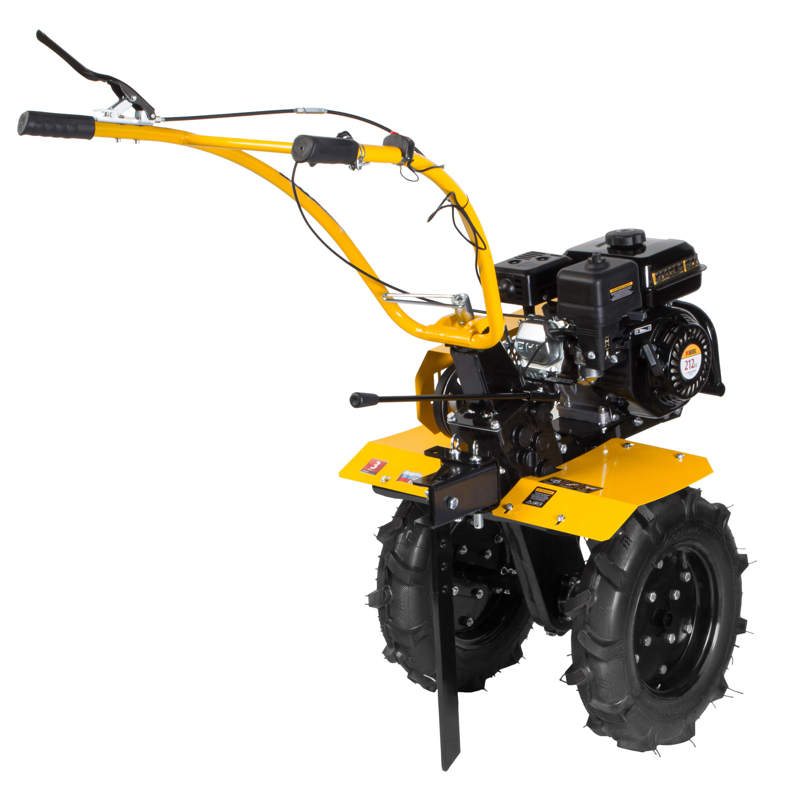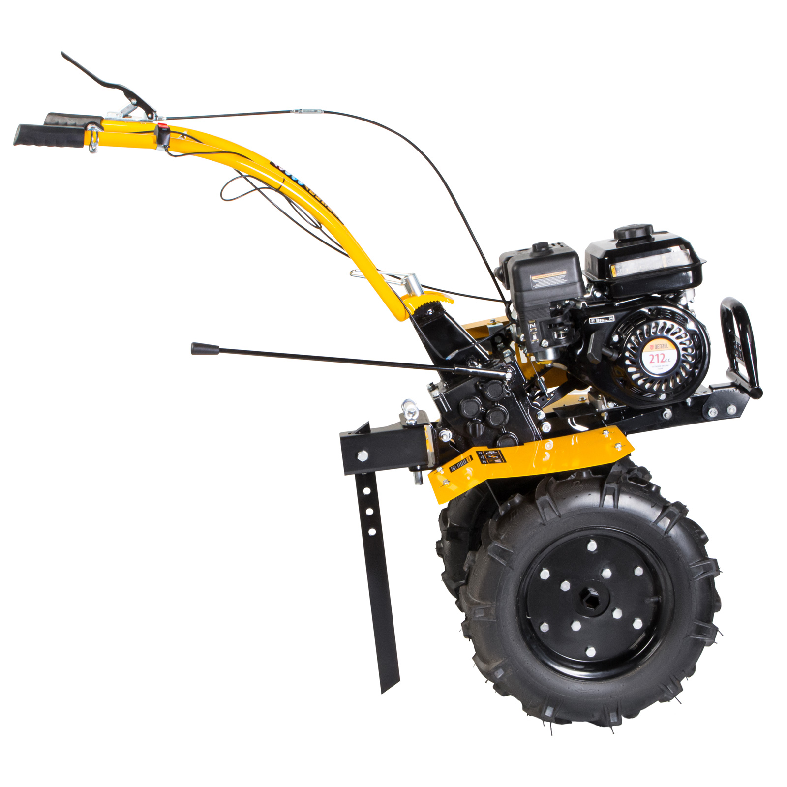 - Легкое управление — регулятор оборотов двигателя, выключатель зажигания и рычаг сцепления находятся на рукоятке перед пользователем.