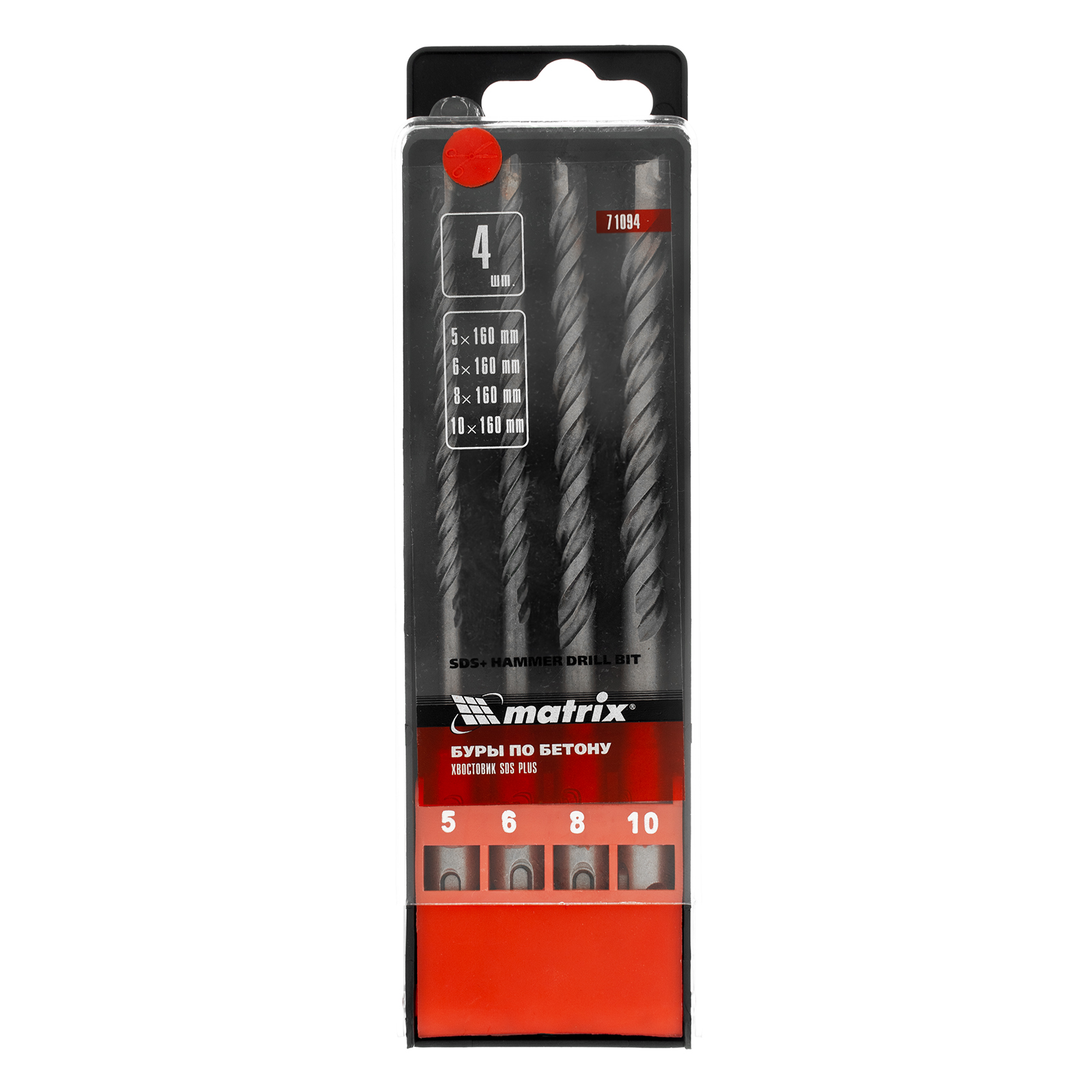 Набор буров по бетону, 5-6-8-10 х 160 мм, 4 шт, в пластиковой коробке, SDS Plus Matrix в Москве