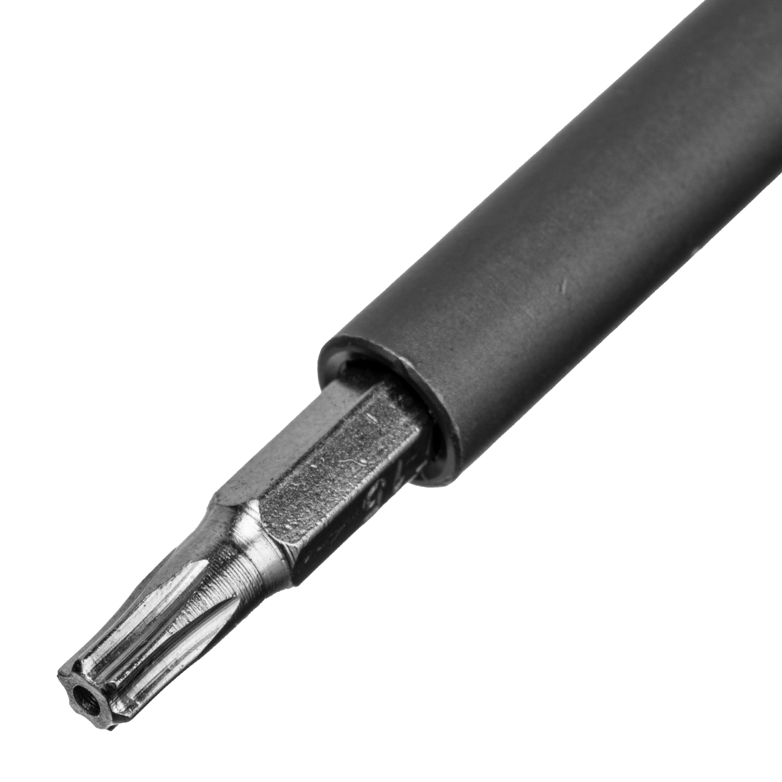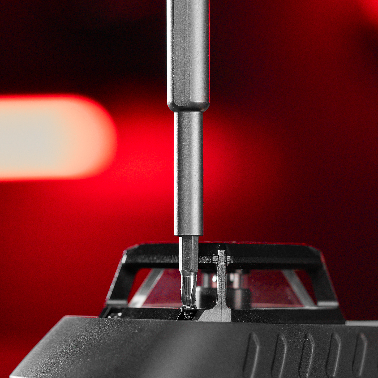 - Надежная фиксация бит — сильный встроенный магнит удерживает насадку в держателе.