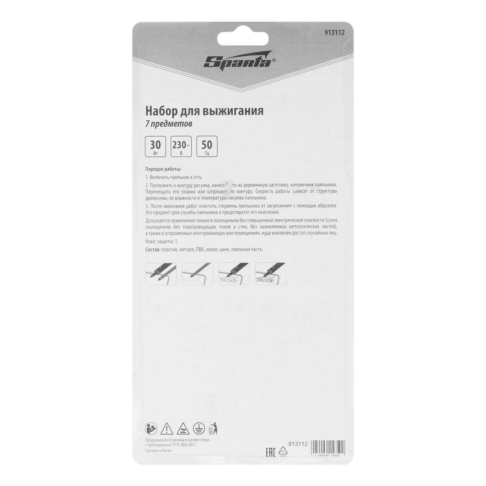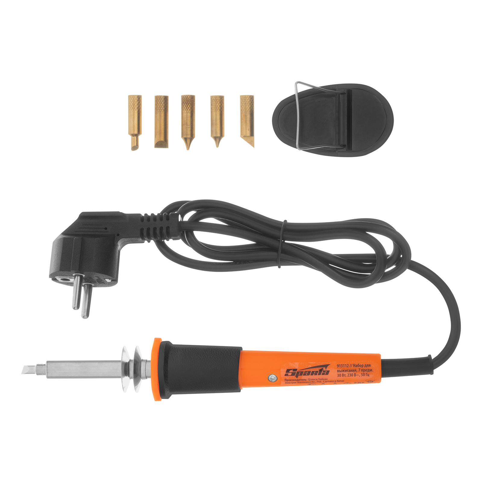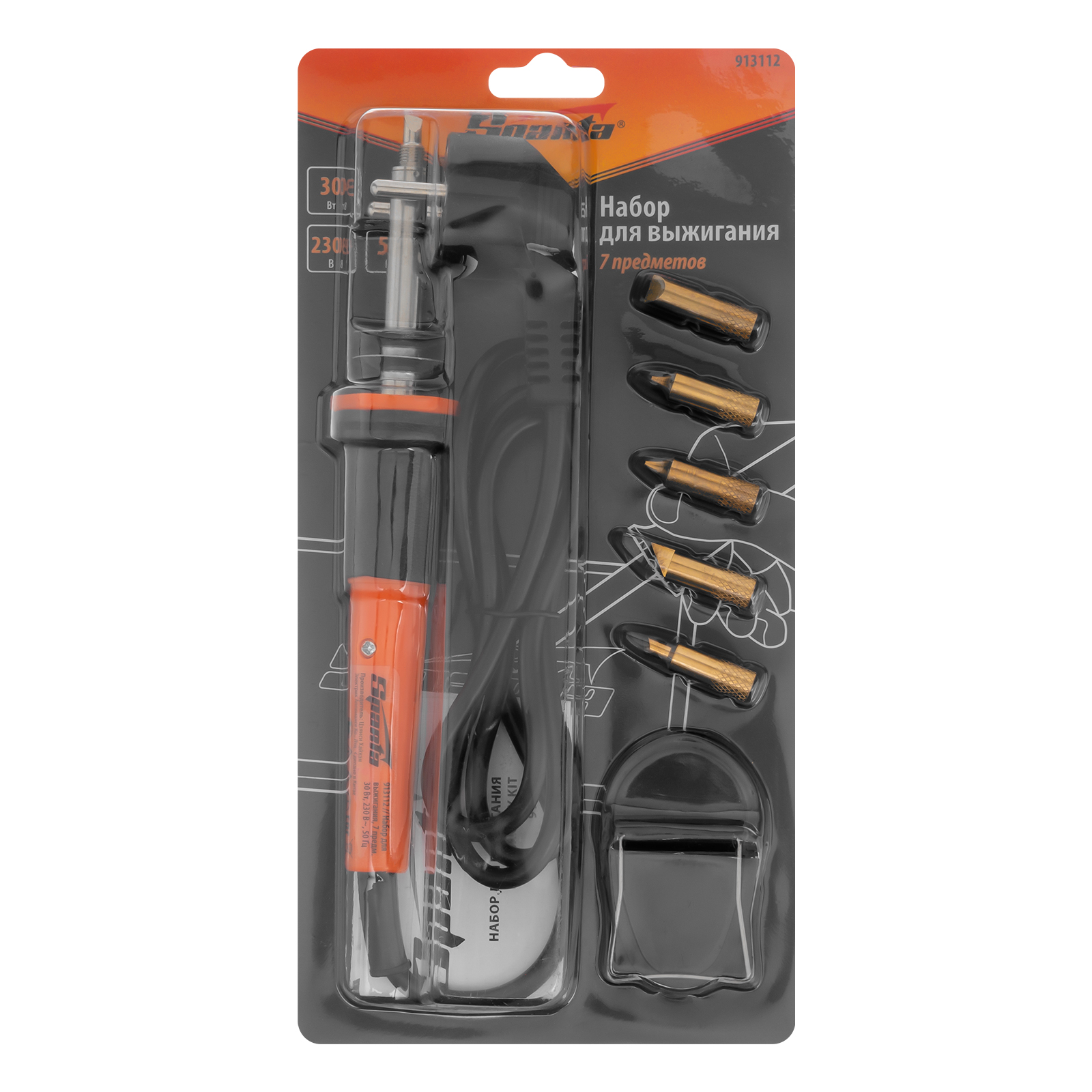Набор для выжигания, 7 предметов: паяльник 30 Вт, подставка, жала сменные Sparta в Москве