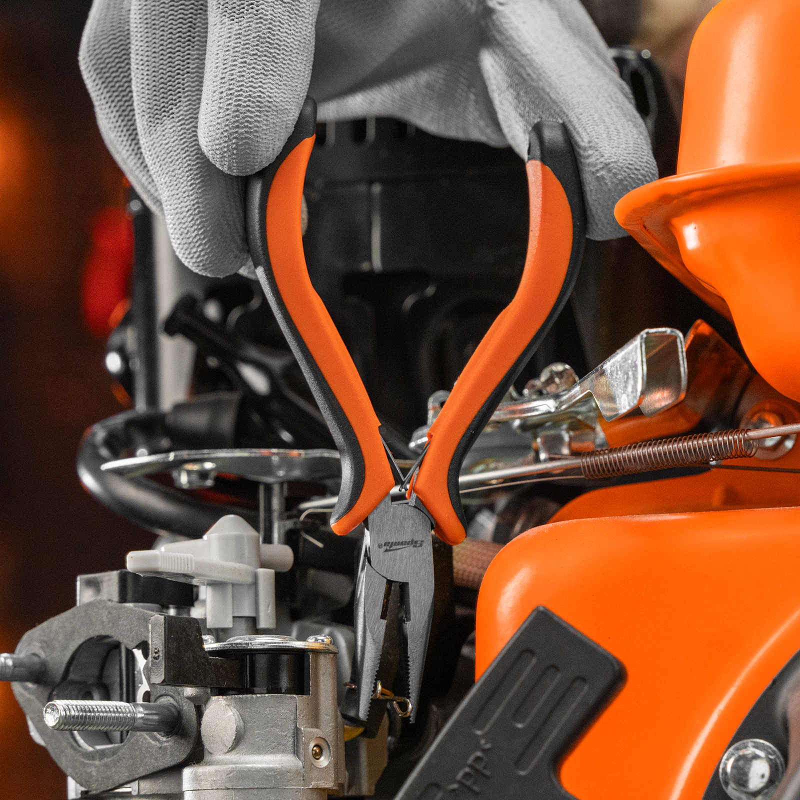 - Отвертки и длинногубцы имеют пластиковые рукоятки для удобства захвата.