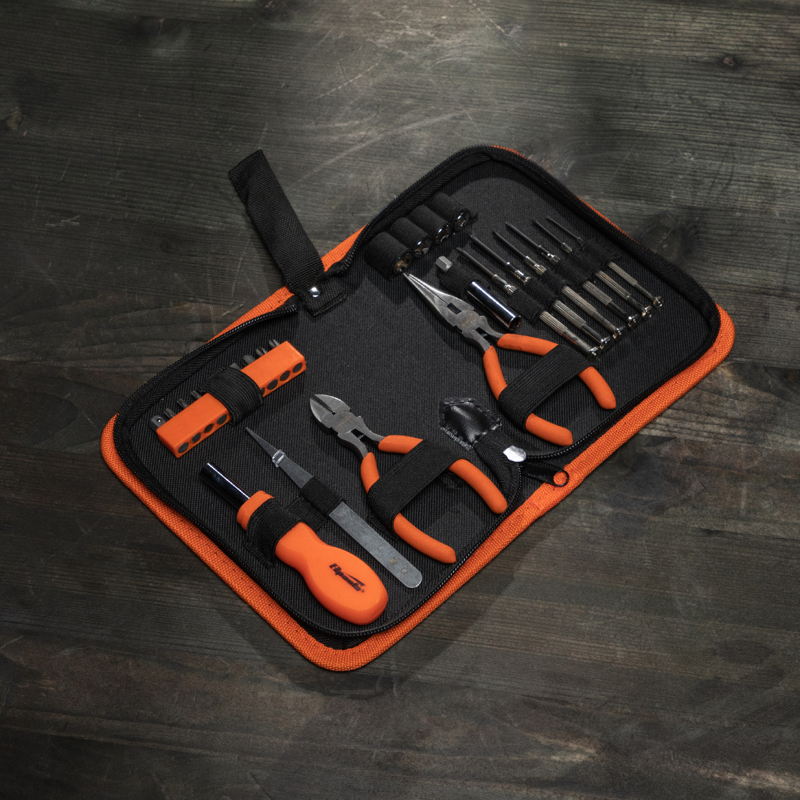 - Компактный тканевый пенал на молнии обеспечивает удобство и безопасность транспортировки/хранения набора.