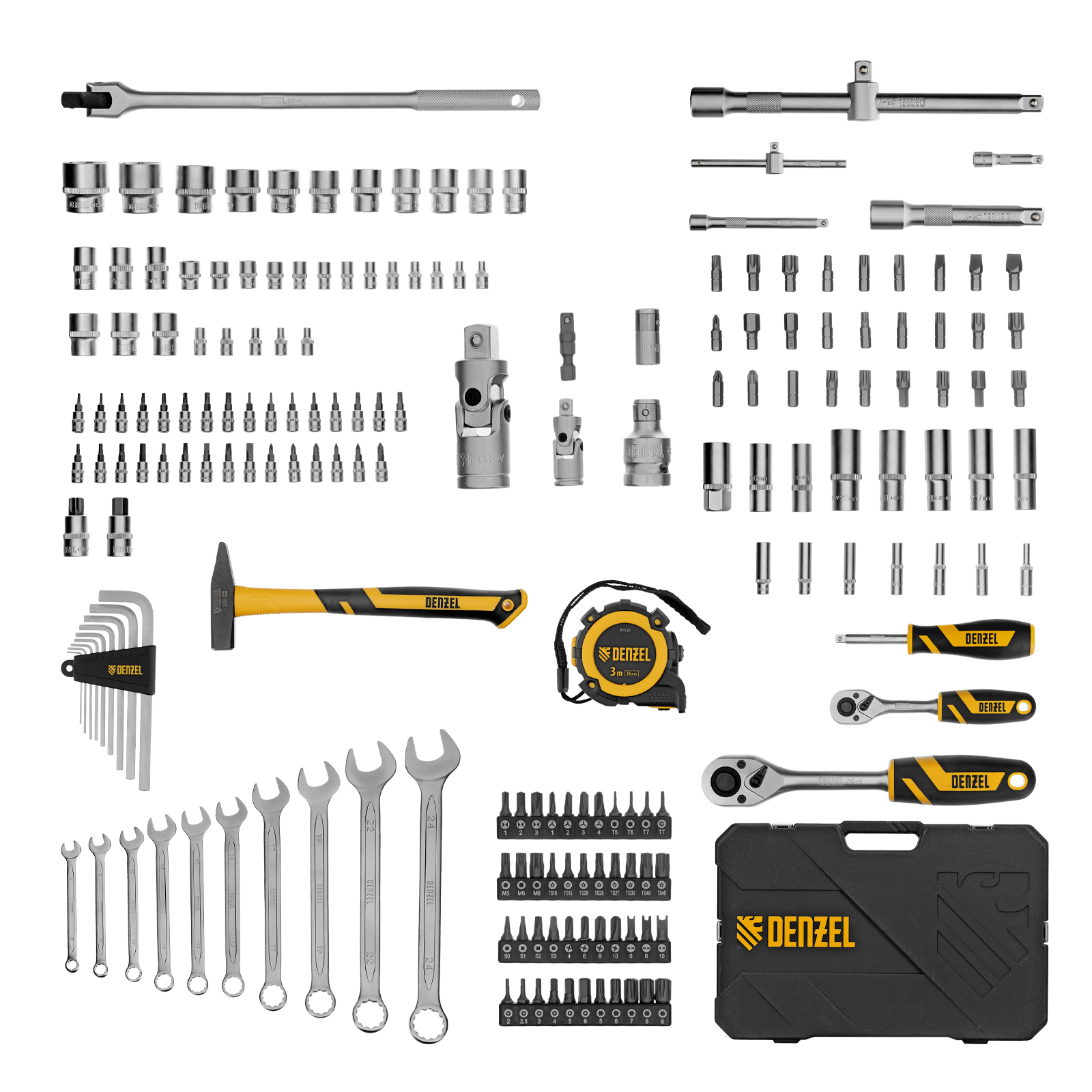 Набор инструментов, 1/2", 1/4", CrV, S2, пластиковый кейс, 194 предмета Denzel в Москве