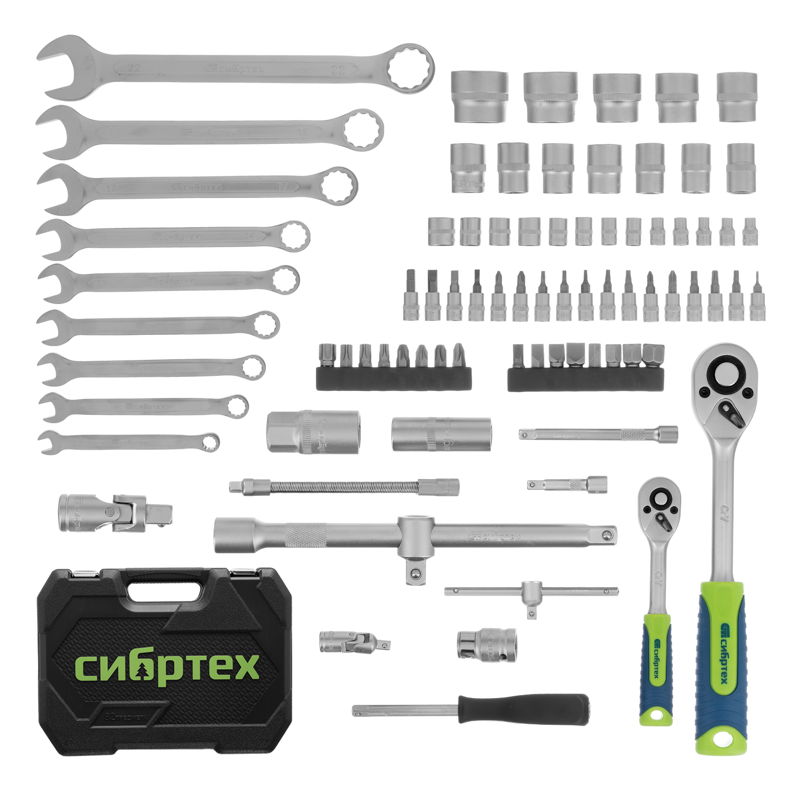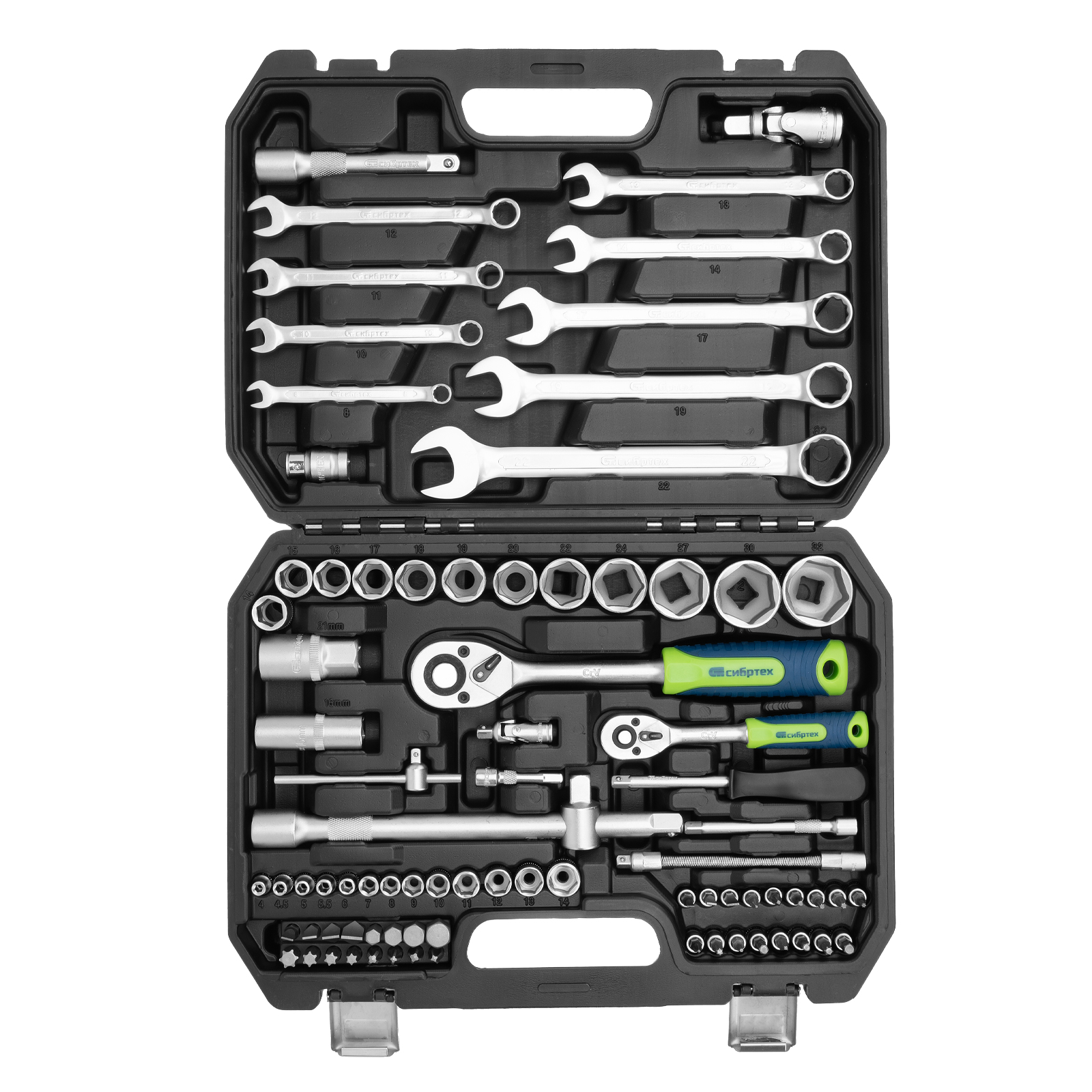 Набор инструментов, 1/2", 1/4", пластиковый кейс, 82 предмета Сибртех в Москве