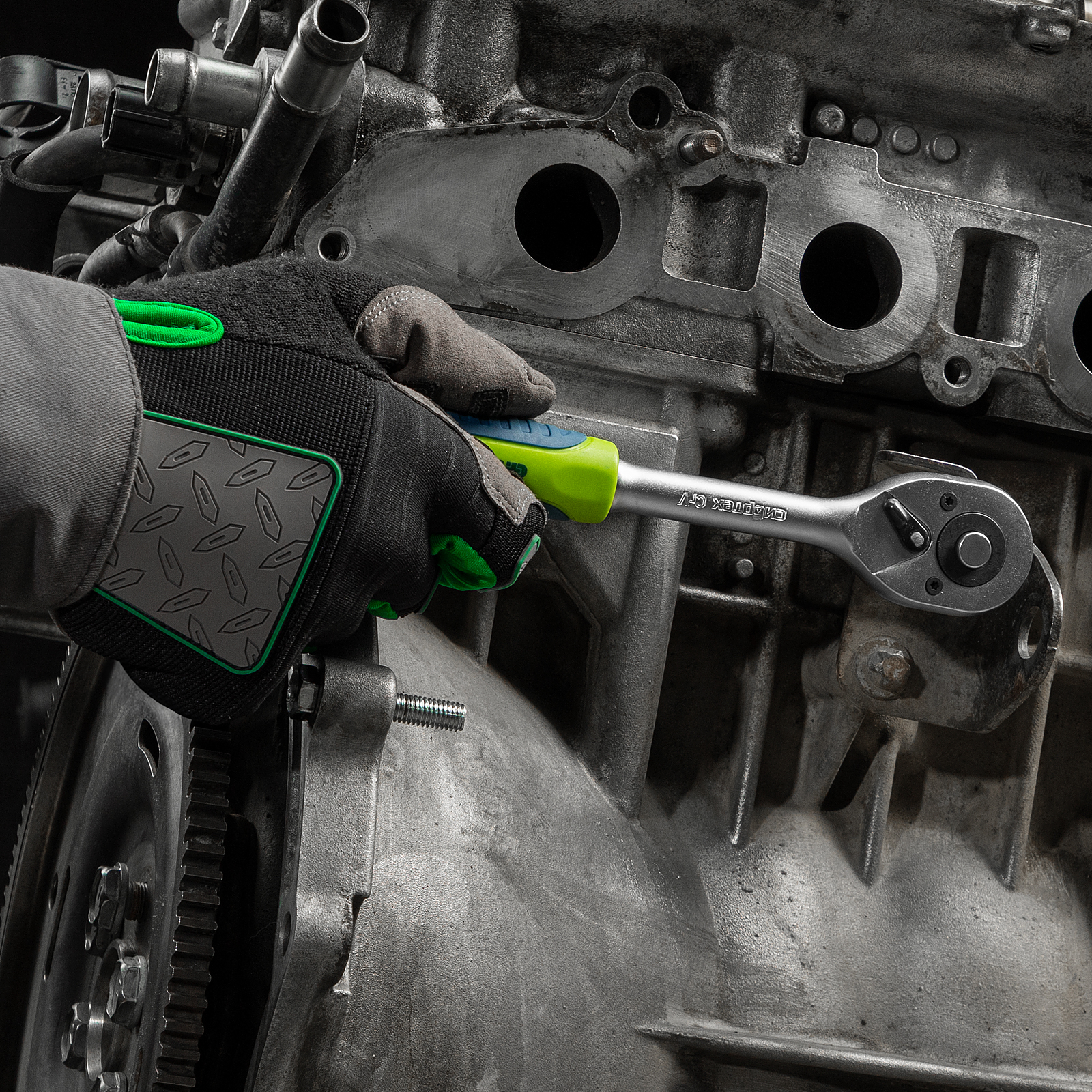 - Эргономичность — двухкомпонентные рукоятки трещоточных ключей удобно ложатся в руку.