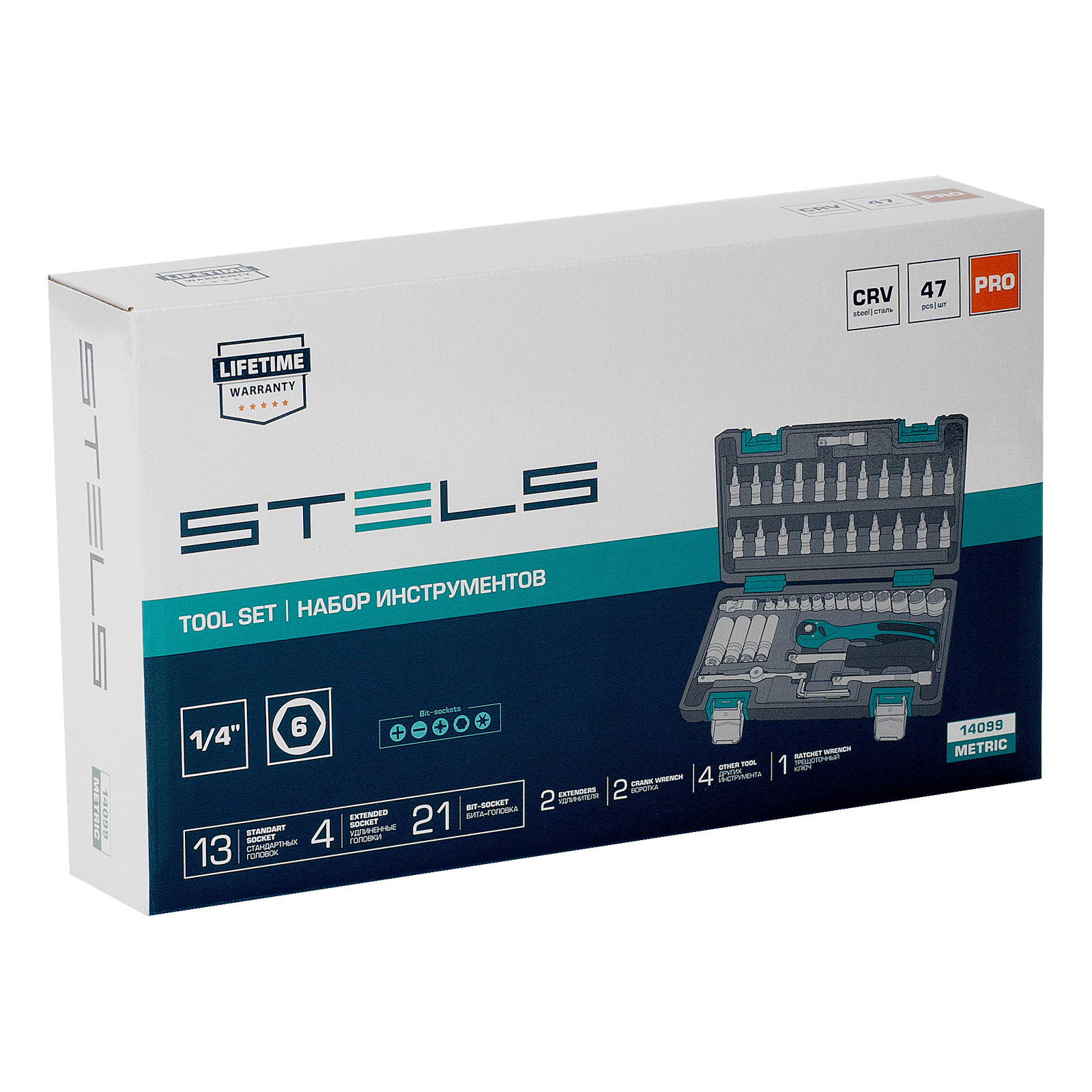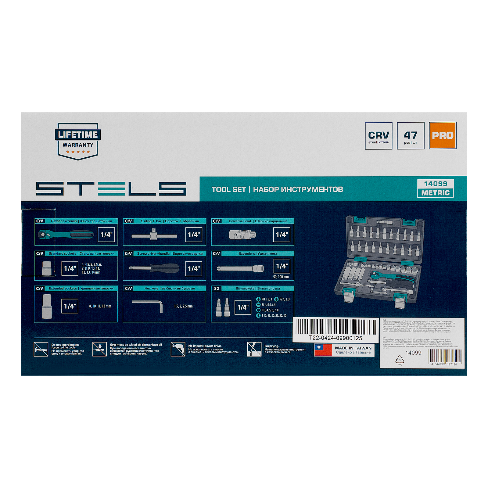 Набор инструментов, 1/4", Cr-V, S2, усиленный кейс, 47 предметов Stels в Москве