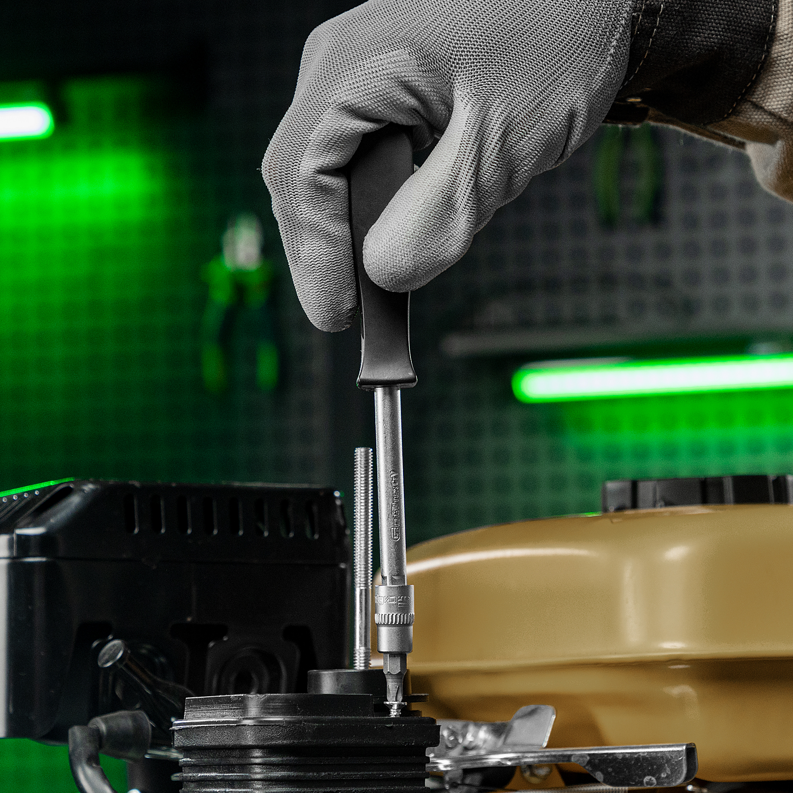- Прочная фиксация — шариковый замок на трещотках, воротках, шарнирах и удлинителях надежно удерживает головки.