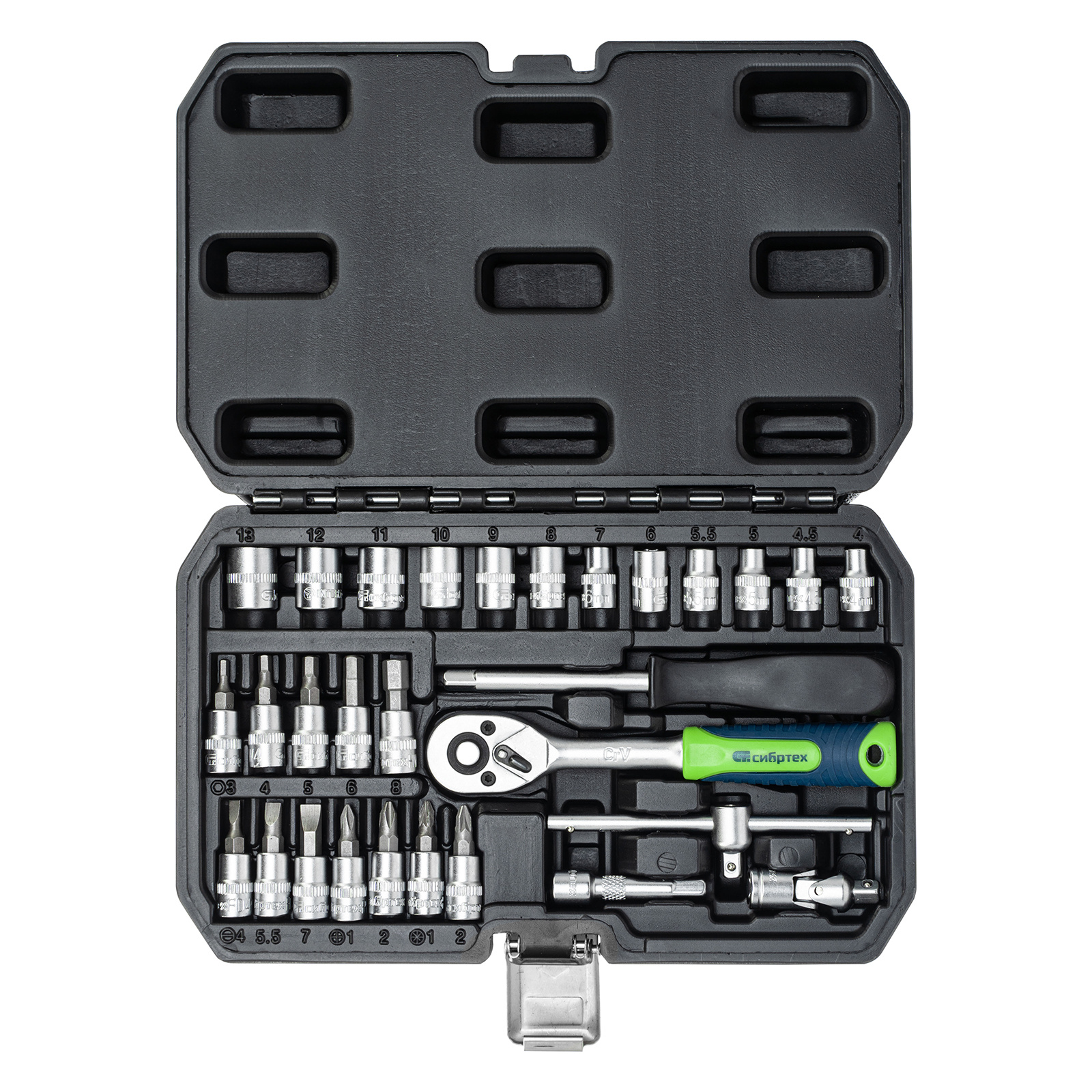 Набор инструментов, 1/4", пластиковый кейс, 29 предметов Сибртех в Москве