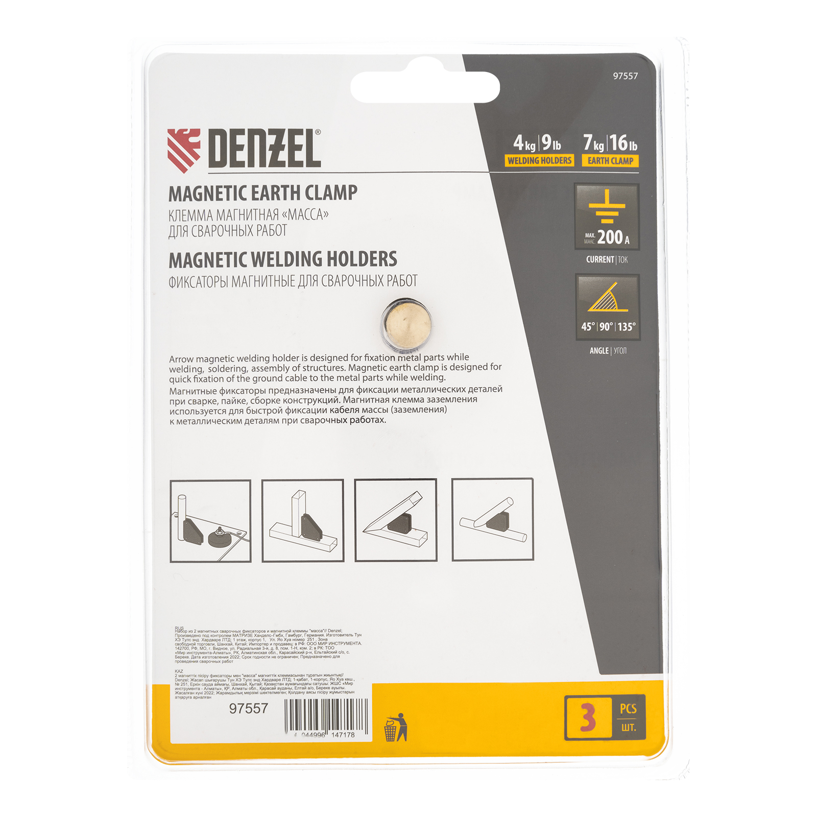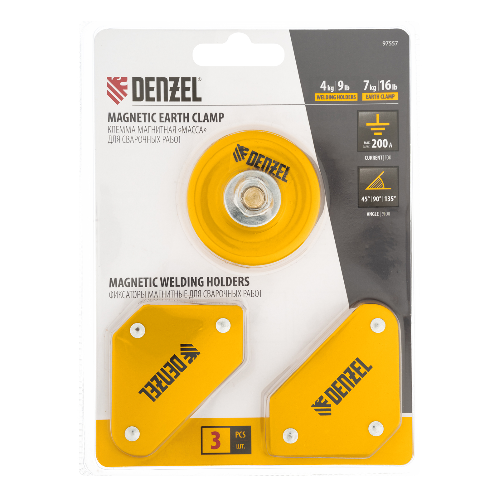 Набор из 2 магнитных сварочных фиксаторов и магнитной клеммы "масса" Denzel в Москве