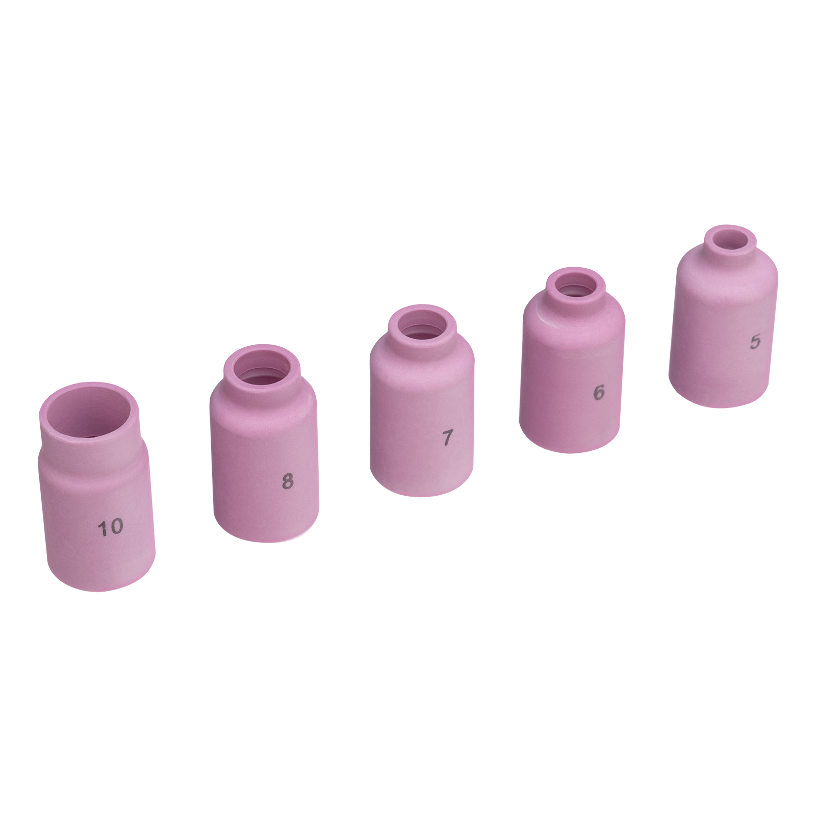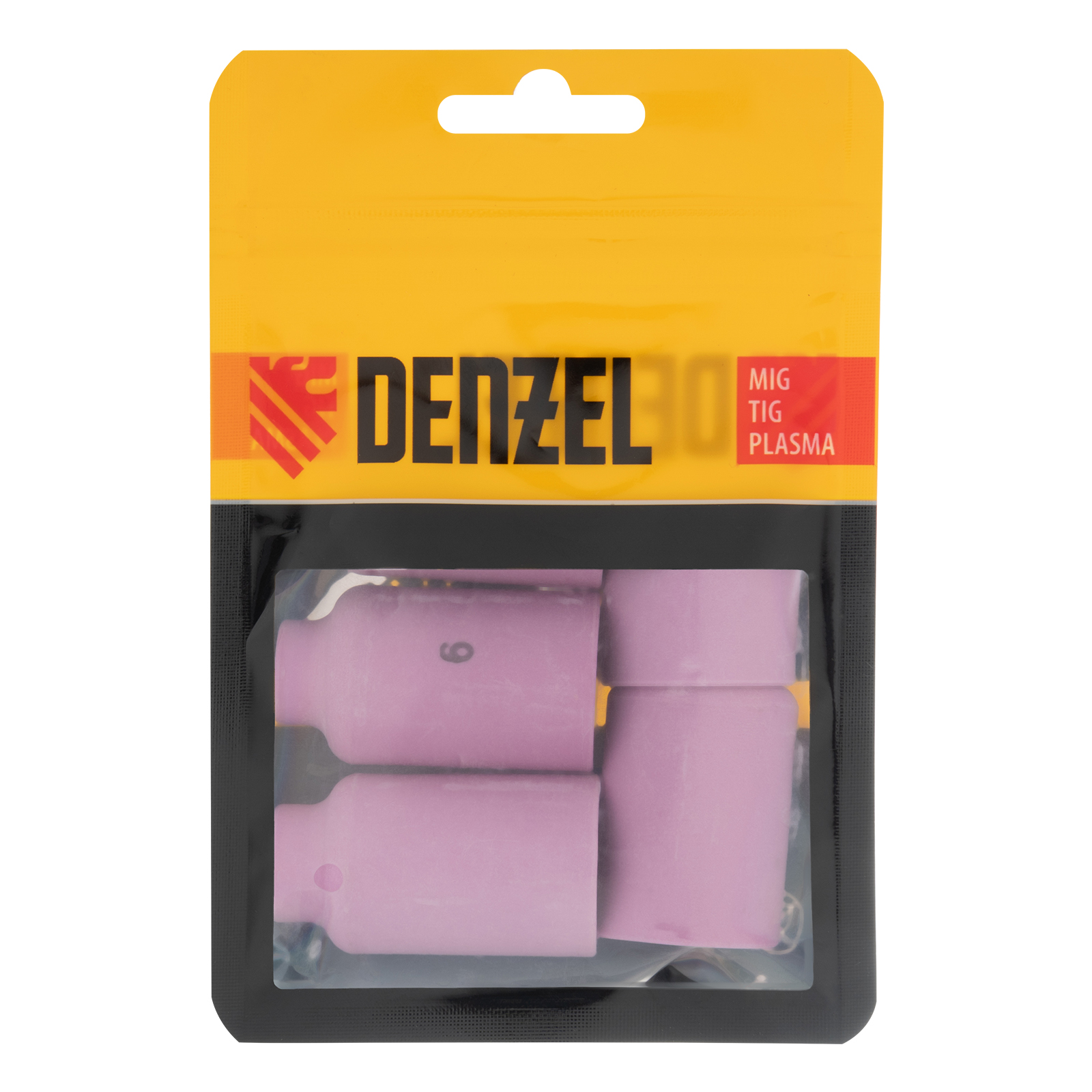 Набор керамических сопел Denzel 93659 для газовой линзы включает в себя оснастку № 5, 6, 7, 8, 10, предназначенную для формирования потока защитного газа во время проведения сварочных работ. Предотвращает поступление кислорода к свариваемому материалу и повышает качество сварного шва. Сопла совместимы с TIG-горелками Denzel 93643, 93644, а также с моделями других торговых марок с аналогичным посадочным разъемом.