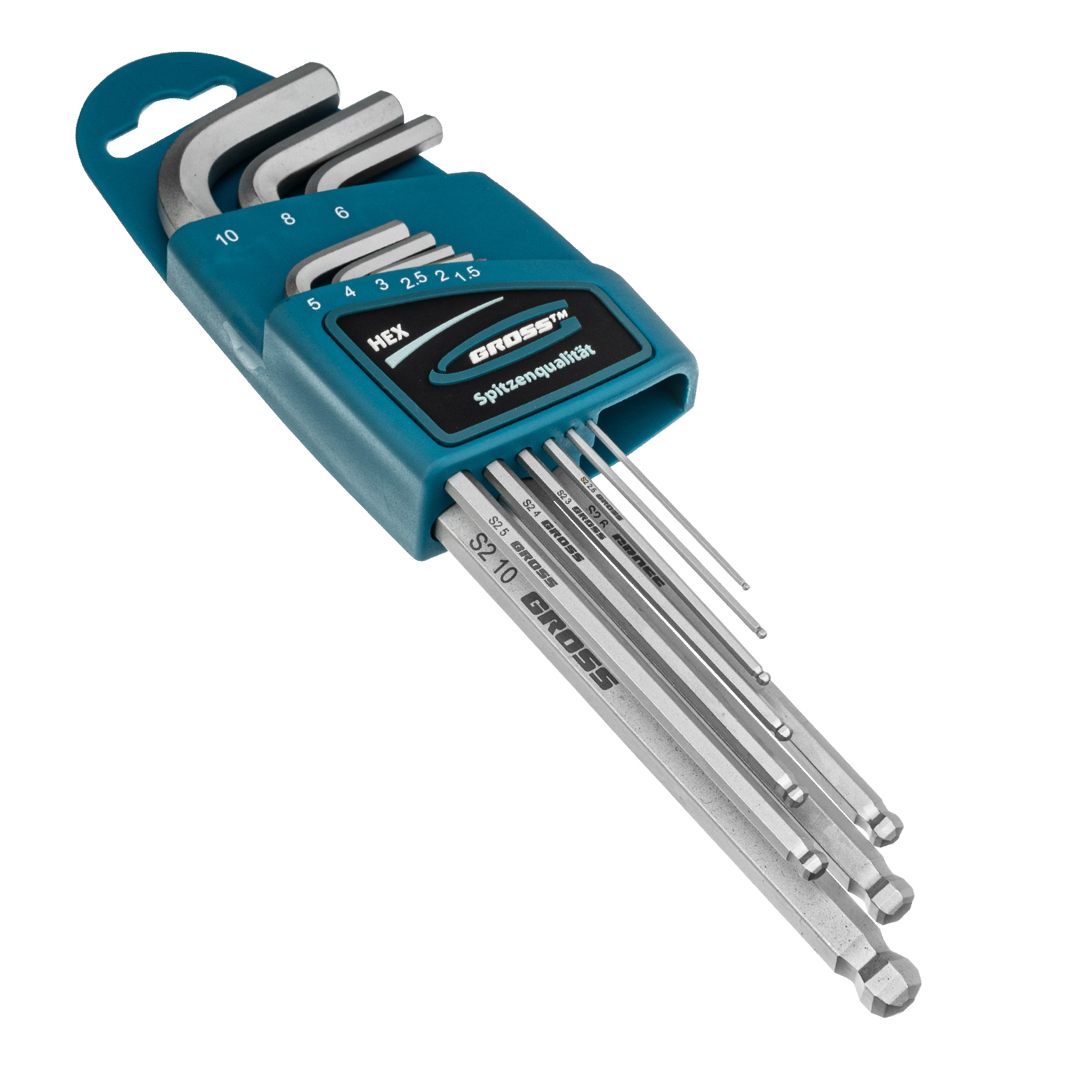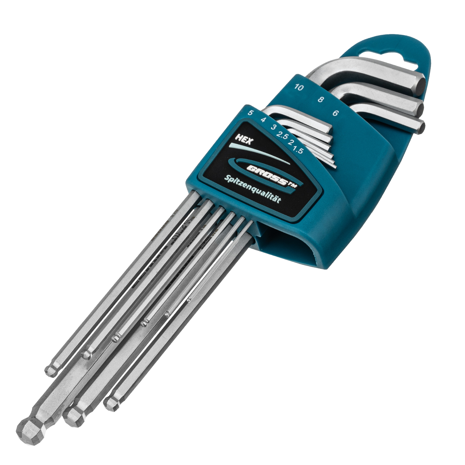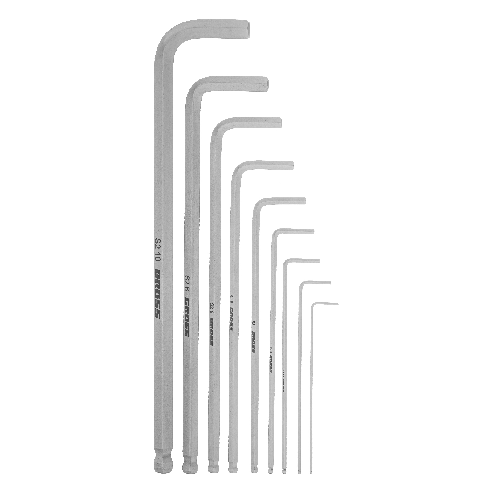 Набор ключей имбусовых HEX, 1.5-10 мм, S2, 9 шт, экстра-длинные с шаром, сатинированные Gross в Москве