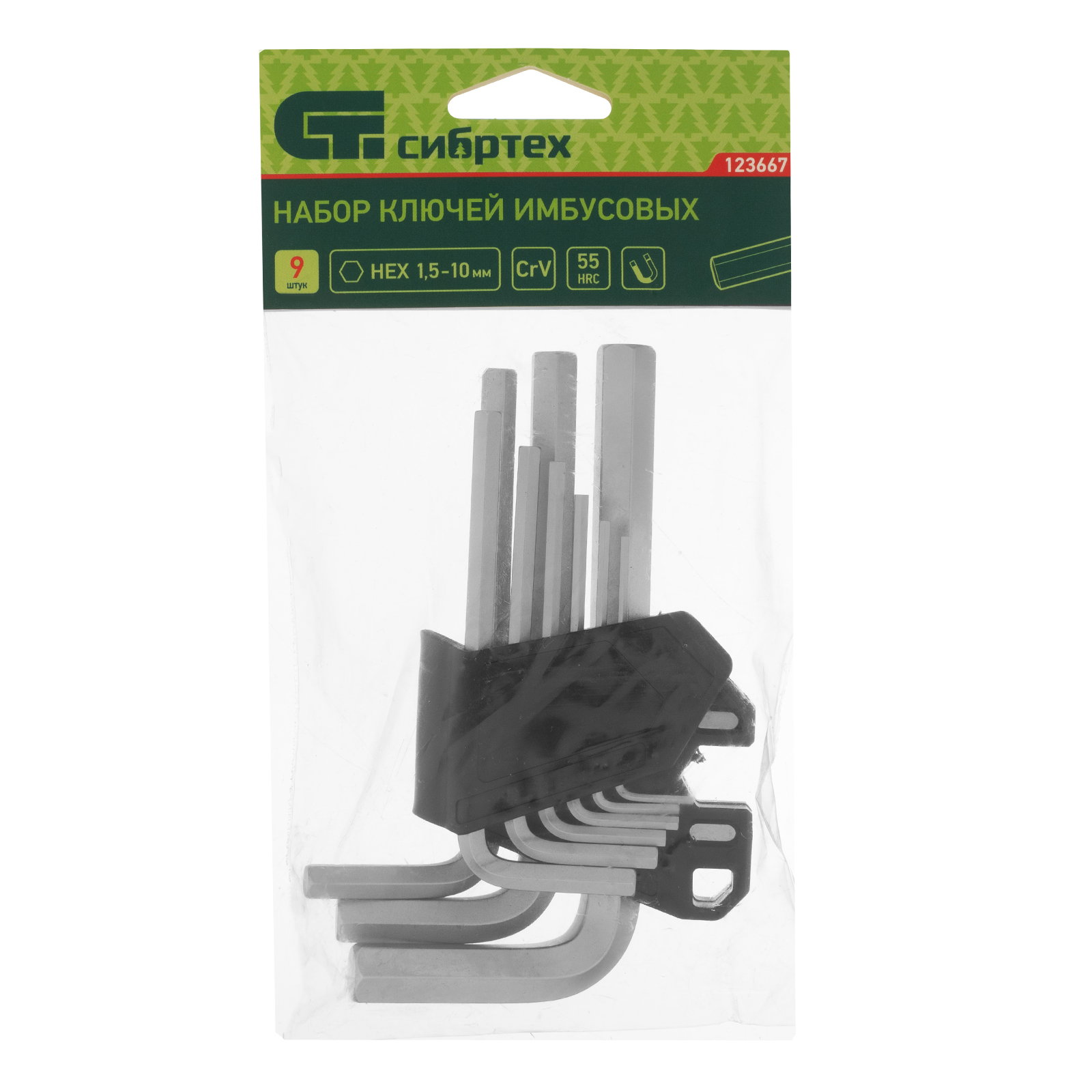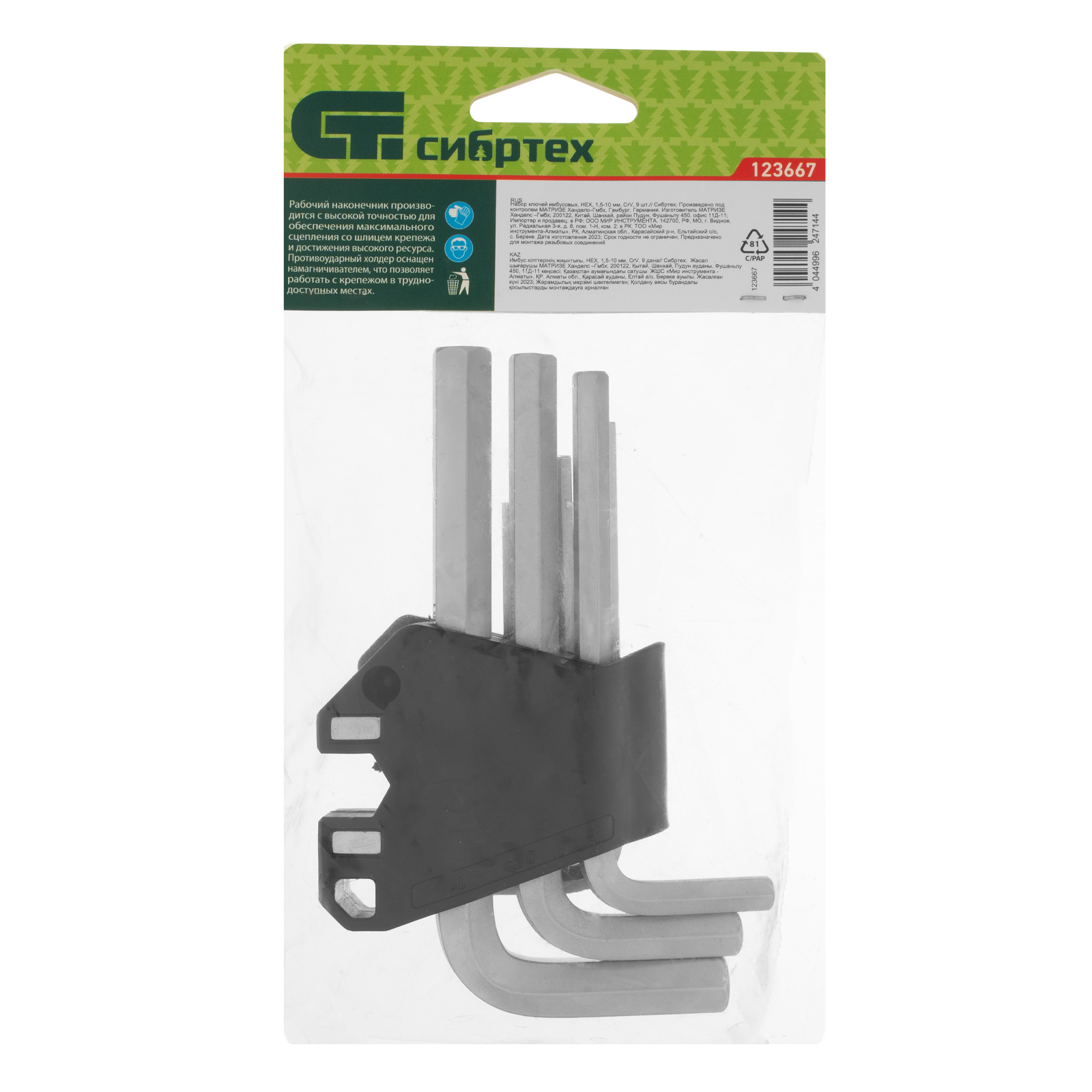 Набор ключей имбусовых, HEX, 1,5-10 мм, CrV, 9 шт. Сибртех в Москве