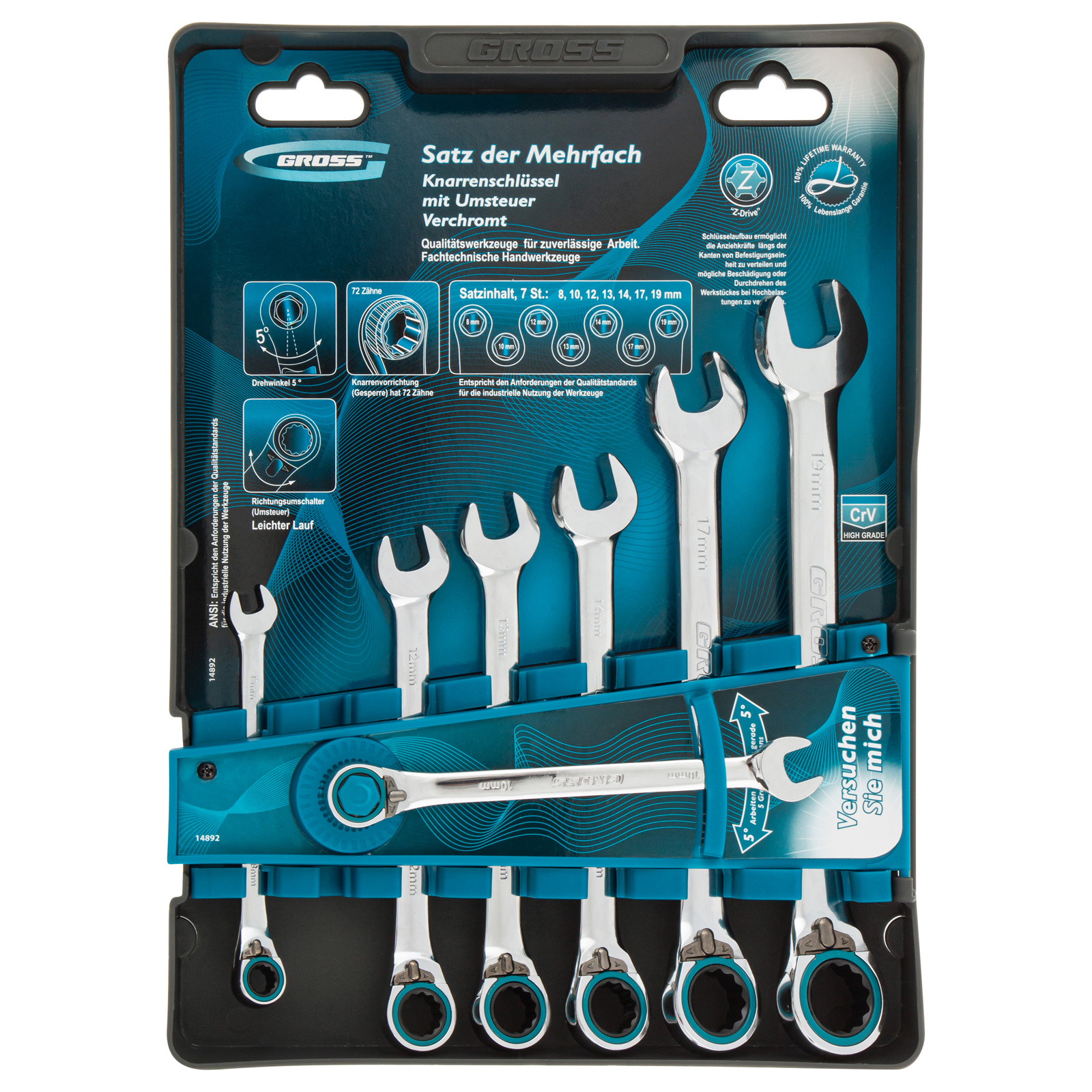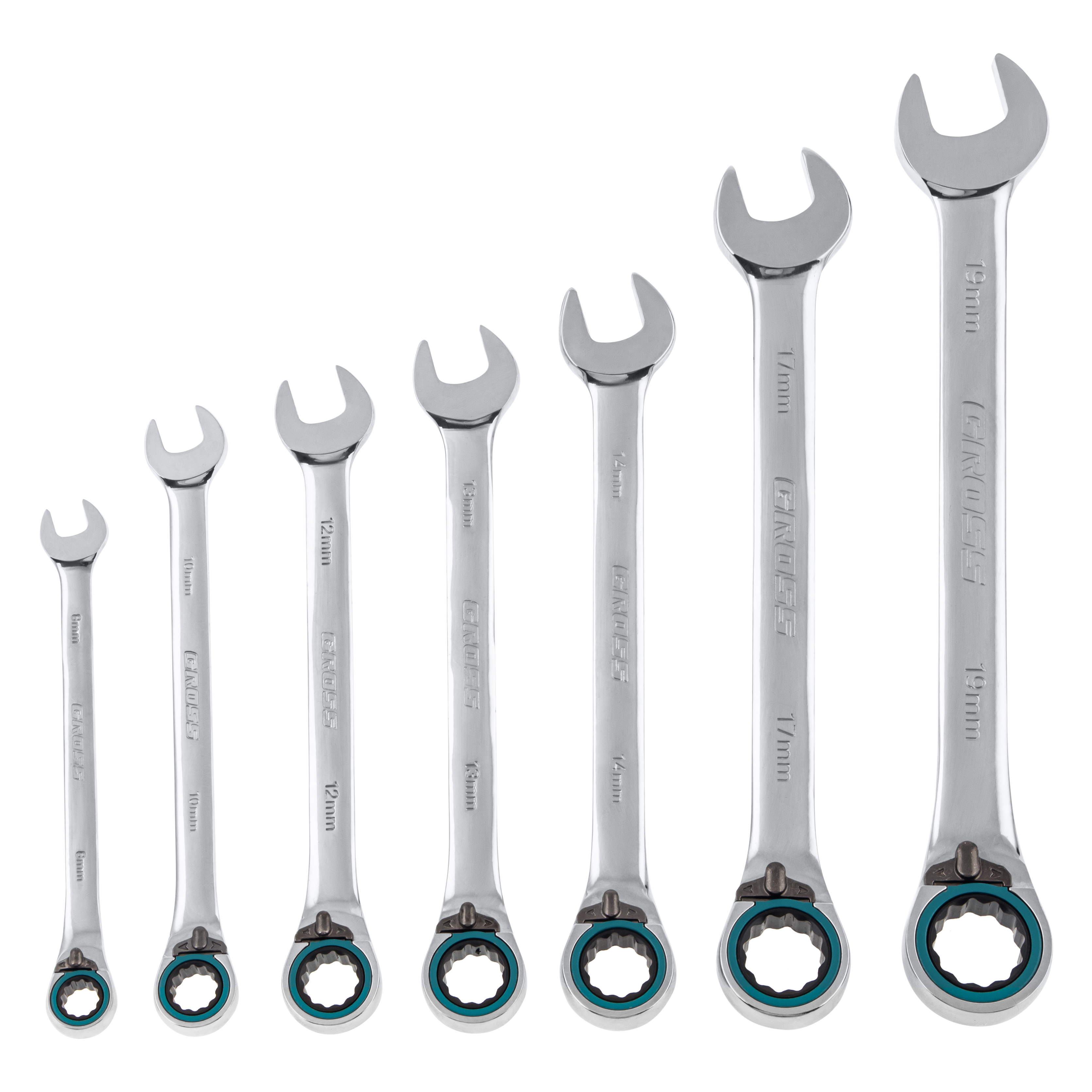 Набор ключей комбинированных с трещоткой, 8-19 мм, 7 шт, реверсивные, CrV Gross в Москве