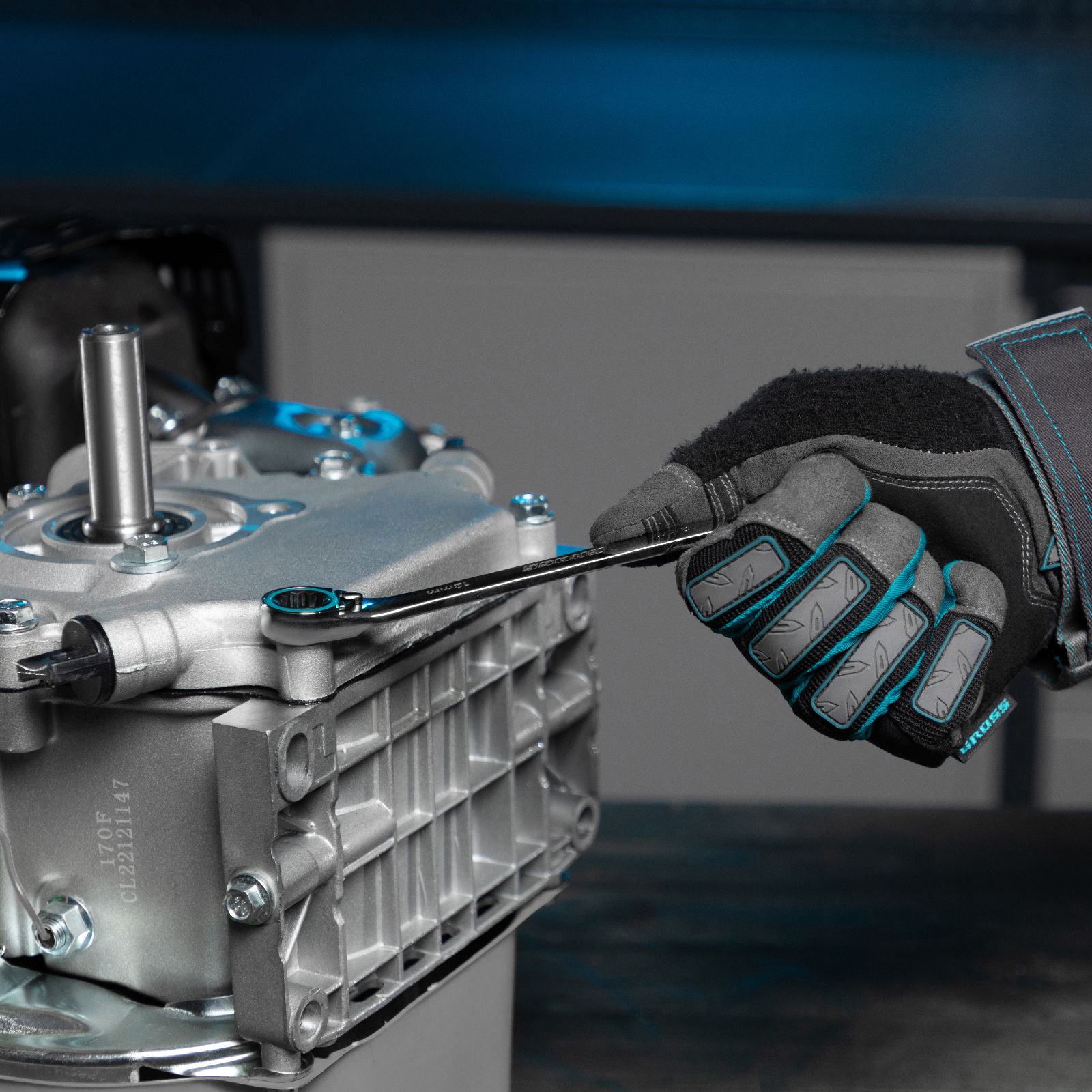- Удобная работа даже в труднодоступных местах — храповой механизм с 72 зубцами обеспечивает плавную и быструю работу с резьбовыми соединениями (угол отклонения трещотки составляет всего 5 градусов).