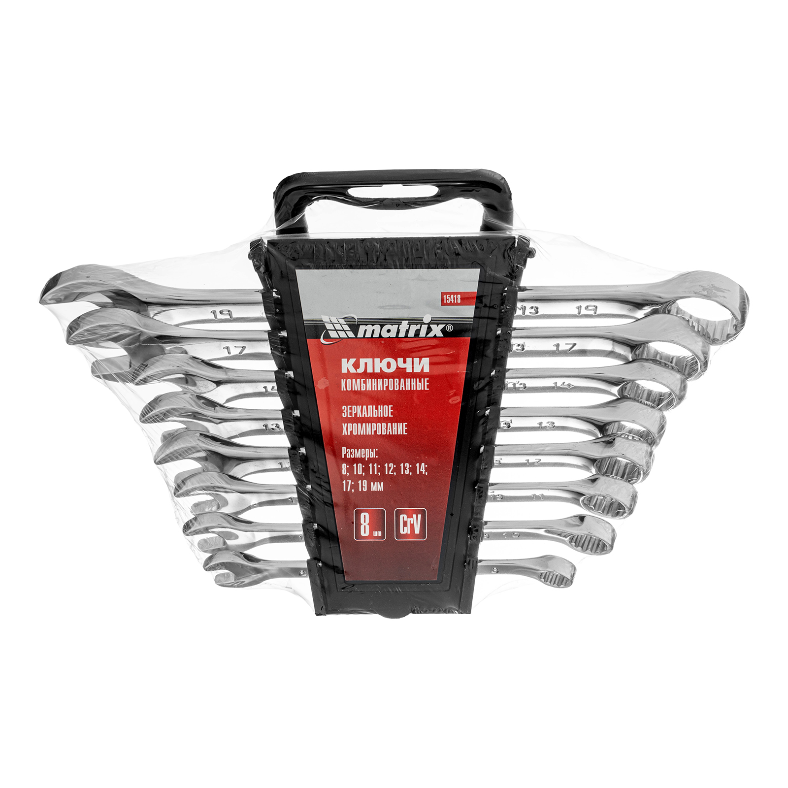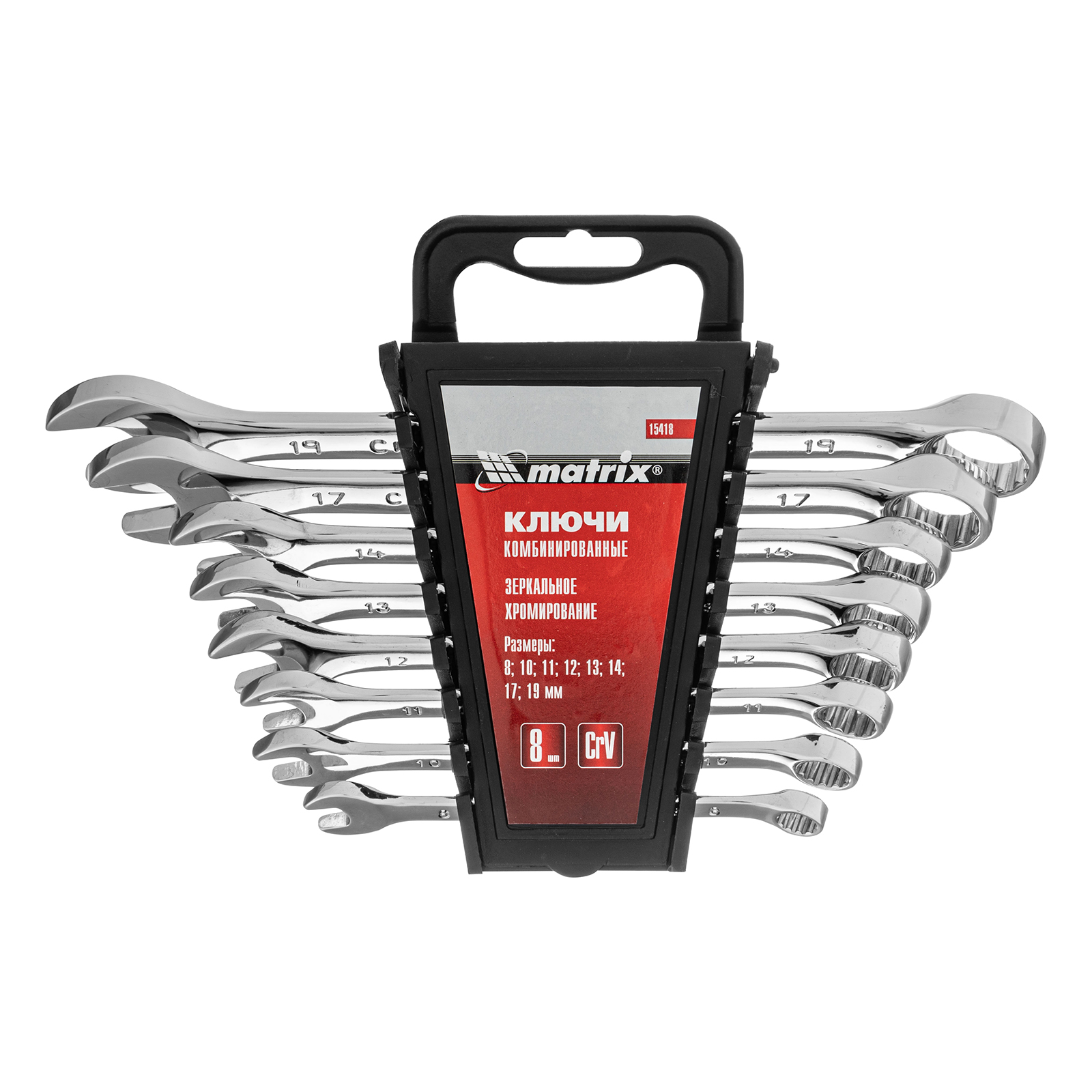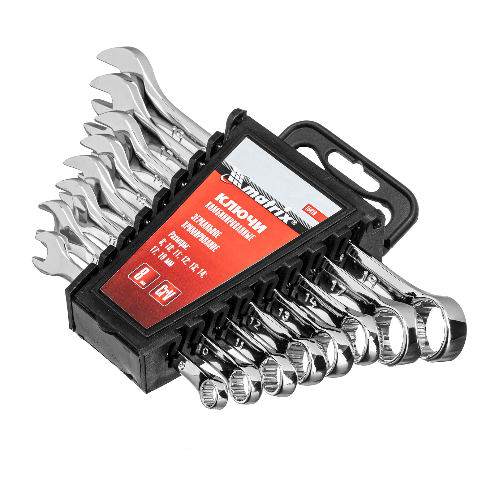 Набор ключей комбинированных, 8-19 мм, 8 шт, CrV, полированный хром Matrix в Москве