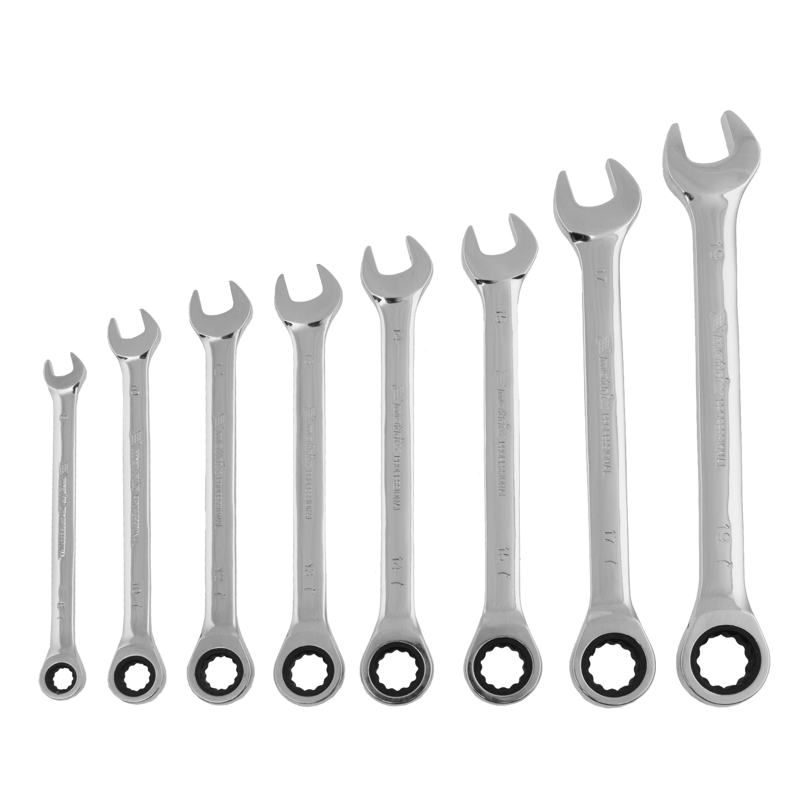 Набор ключей комбинированных, трещеточных - 8 шт, типоразмеры - 8, 10, 12, 13, 14, 15, 17, 19 |